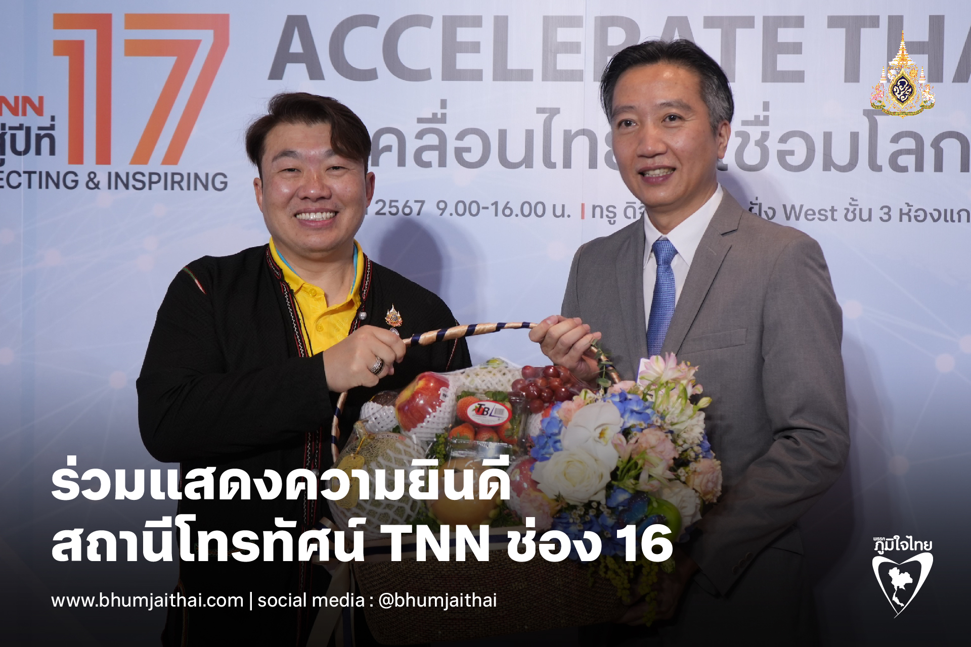 "ภูมิใจไทย" ร่วมแสดงความยินดี กับสถานีโทรทัศน์ TNN ช่อง 16 ก้าวเข้าสู่ปีที่ 17