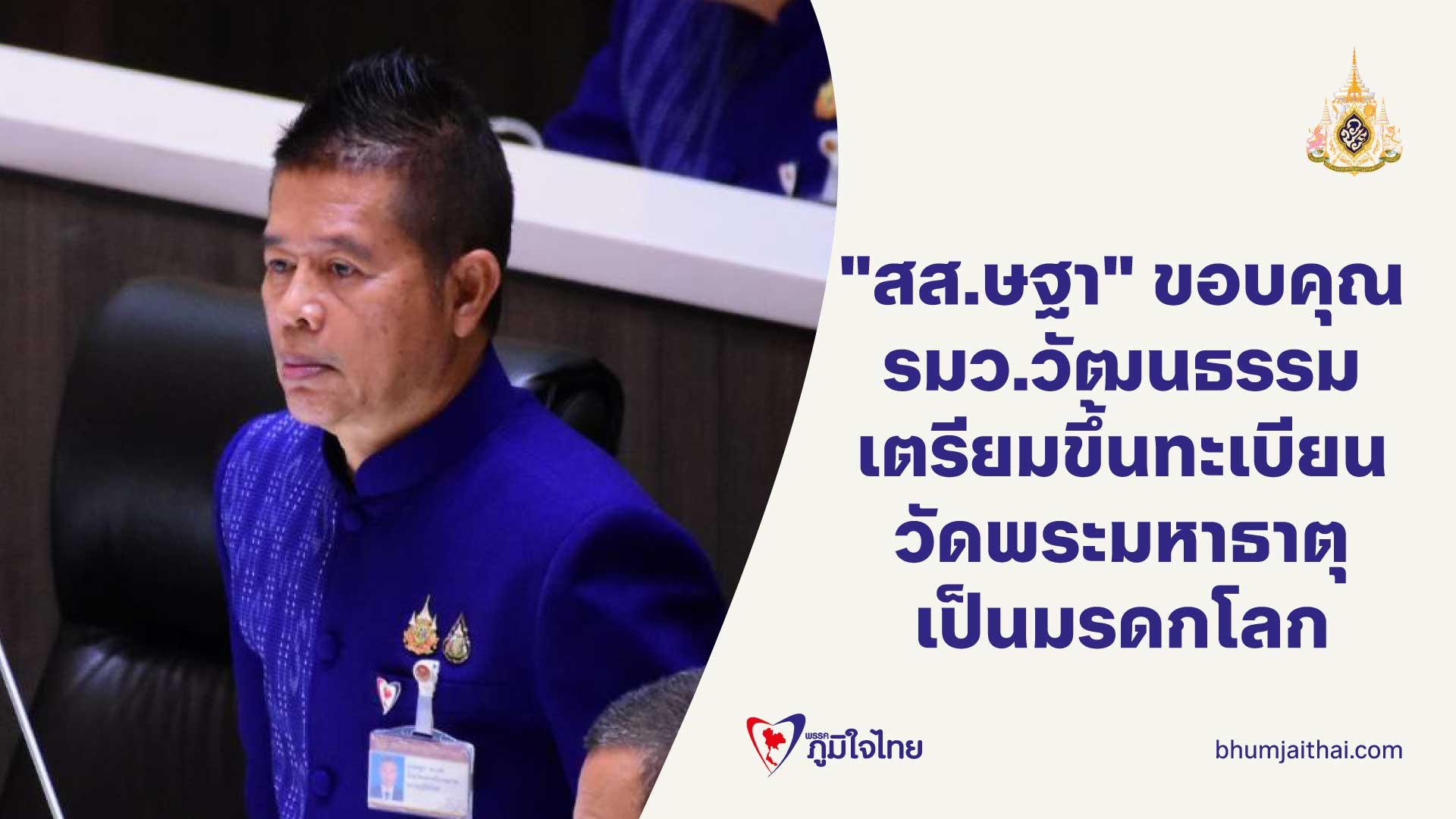 นายษฐา ขาวขำ สมาชิกสภาผู้แทนราษฎรจังหวัดนครศรีธรรมราช พรรคภูมิใจไทย ปรึกษาหารือประธานสภาเรื่องของการนําเสนอวัดพระมหาธาตุวรมหาวิหารขึ้นทะเบียนเป็นมรดกโลก โดยองค์การยูเนสโก พี่น้องประชาชนจังหวัดนครศรีธรรมราชได้ให้ความสนใจและติดตามมาอย่างต่อเนื่อง และได้นําเรื่องนี้มาปรึกษาหรือท่านประธานสภาฯ สองครั้ง ขอบพระคุณ นางสาวสุดาวรรณ หวังศุภกิจโกศล รัฐมนตรีว่าการกระทรวงวัฒนธรรม พร้อมด้วยอธิบดีกรมศิลปากร พร้อมคณะ ได้เดินทางไปติดตามในส่วนของจังหวัดนครศรีธรรมราช เมื่อวันที่ 24 สิงหาคม 2567
