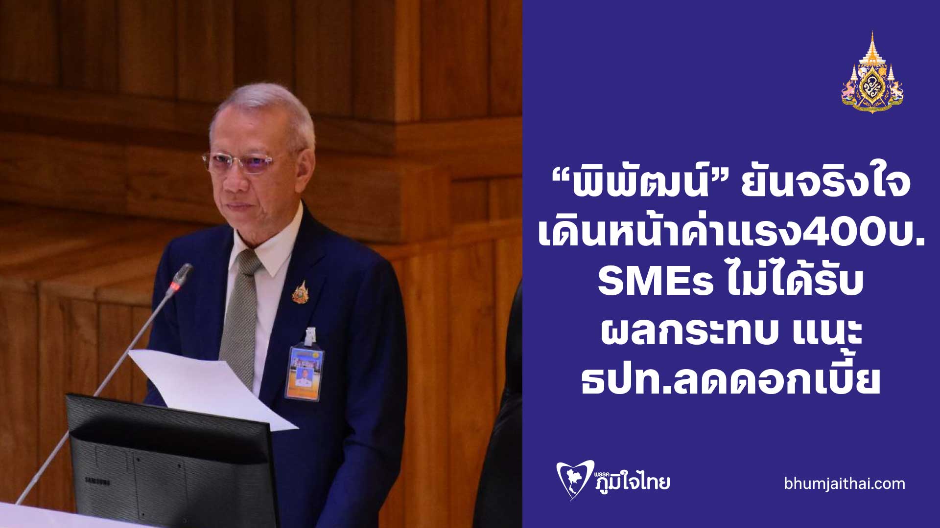 "พิพัฒน์" ยันจริงใจ เดินหน้าค่าแรง 400 บ. SMEs ไม่ได้รับผลกระทบ แนะ ธปท.ลดดอกเบี้ย