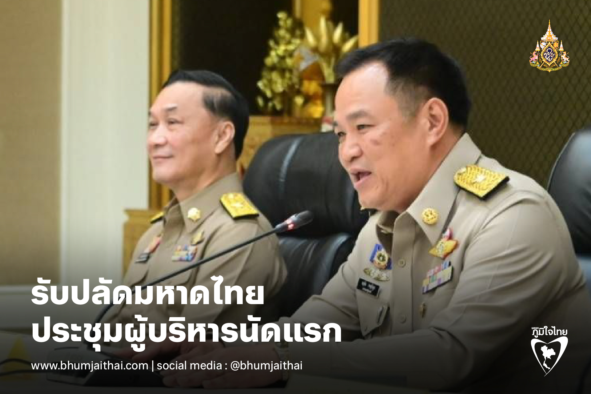 “อนุทิน” นั่งหัวโต๊ะประชุมผู้บริหาร มท. นัดแรกปีงบ 68 รับปลัดใหม่ ฝากความหวังพาข้าราชการสนองนโยบายรัฐบาล ย้ำประชาชนคือนาย ผู้ว่าฯไม่มีเกียร์ว่าง มุ่งไปข้างหน้าไม่เสียเวลามองอดีต วันนี้ (1 ต.ค. 67) เวลา 09.00 น. ที่ห้องประชุมราชสีห์ ชั้น 2 อาคารศาลาว่าการกระทรวงมหาดไทย นายอนุทิน ชาญวีรกูล รองนายกรัฐมนตรีและ รมว.มหาดไทย เป็นประธานการประชุมผู้บริหารระดับสูงของกระทรวงมหาดไทย โดยมี นายทรงศักดิ์ ทองศรี นางสาวซาบีดา ไทยเศรษฐ์ นางสาวธีรรัตน์ สำเร็จวาณิชย์ รัฐมนตรีช่วยว่าการกระทรวงมหาดไทย นายอรรษิษฐ์ สัมพันธรัตน์ ปลัดกระทรวงมหาดไทย พร้อมด้วยคณะผู้บริหารระดับระดับกรมและหน่วยงานรัฐวิสาหกิจในสังกัดกระทรวงมหาดไทย และผู้ว่าราชการจังหวัดทุกจังหวัด ร่วมประชุมผ่านระบบประชุมทางไกล (VCS) นายอนุทิน กล่าวแสดงความยินดีกับนายอรรษิษฐ์ สัมพันธรัตน์ ปลัดกระทรวงมหาดไทยคนที่ 42 ที่เข้ารับตำแหน่งในวันนี้ คิดว่าเราทุกคนคงคุ้นเคยกันอย่างดีและได้ทำงานร่วมกันกับท่าน ซึ่งผมเชื่อมั่นว่าเราจะได้ร่วมมือกันในการขับเคลื่อนนโยบายของรัฐบาลและภารกิจต่าง ๆ ของกระทรวงมหาดไทยได้อย่างมีประสิทธิภาพ เพราะท่านเคยดำรงตำแหน่งสำคัญของกระทรวงมหาดไทยมาแล้วในทุกระดับ จึงเชื่อว่าจะนำพาไปสู่ความสำเร็จและสัมฤทธิ์ผล ทำให้ข้าราชการกระทรวงมหาดไทยปฏิบัติหน้าที่ราชการได้อย่างเข้มแข็ง เป็นไปด้วยความสามัคคี และจะยกระดับการทำงานเพื่อพี่น้องประชาชนอย่างเต็มที่ ในช่วง 1 ปีที่ผ่านมาถือว่าเป็นช่วงที่ทั้งรัฐมนตรี และ ฝ่ายประจำได้ปรับตัวเข้าหากันว่าจะทำอย่างไรให้ทำงานเพื่อประชาชนให้มีประสิทธิภาพ ซึ่งก็ได้เห็นว่าแต่และคนมีทัศนคติ หรือความพร้อมที่จะปรับตัวอย่างไร เป็น 1 ปีแห่งการเรียนรู้ไปสู่ 3-4 ปีข้างหน้าที่จะทำงานอย่างเข้มแข็ง “ขอฝากความหวังในการปฏิบัติภารกิจของรัฐบาลและนโยบายของรัฐมนตรีมหาดไทยทุกท่านอย่างมีประสิทธิภาพ มีธรรมาภิบาล ทำให้พี่น้องคนไทยเห็นว่าเราทุกคนอยู่ที่นี่เพื่อบำบัดทุกข์ บำรุงสุขให้กับพี่น้องประชาชนอย่างชัดเจน ขอให้วันนี้เป็นโอกาสใหม่ของการเริ่มต้นปีงบประมาณ 2568 ด้วยความสมัครสมานสามัคคีไปด้วยกัน และขอย้ำว่าเราทุกคนไม่เสียเวลามองอดีต เรามีความอดทนพร้อมรับความกดดัน เอางานเป็นสำคัญ ขอให้ทุกท่านปฏิบัติหน้าที่ดำรงคงไว้ซึ่งความมีวินัยของข้าราชการอย่างเต็มที่ตามระเบียบบริหารราชการแผ่นดิน การทำงานต้องรู้จักผู้บังคับบัญชา และที่สำคัญคือต้องรู้จักว่าเจ้านายของเราคือประชาชน”นายอนุทิน กล่าว นายอนุทิน กล่า