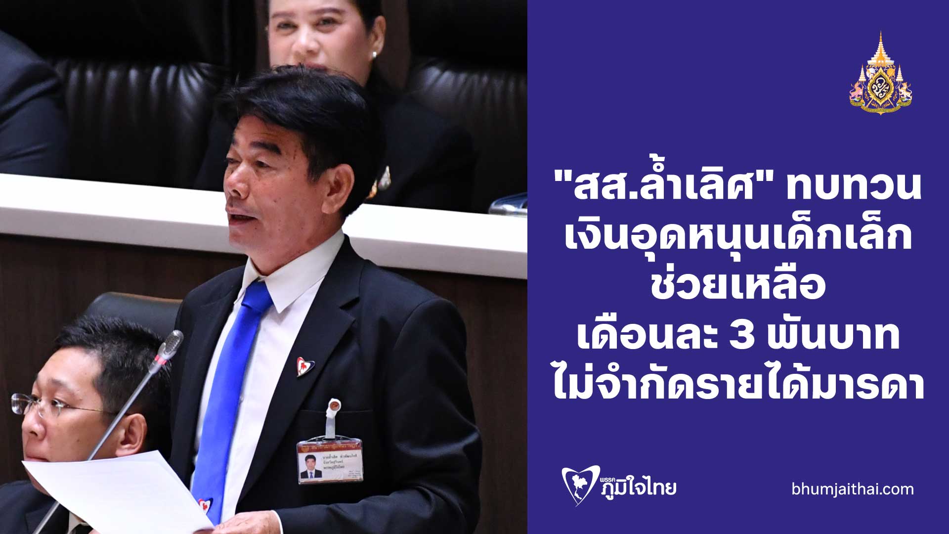 "สส.ล้ำเลิศ" ทบทวนเงินอุดหนุนเด็กเล็ก ช่วยเดือนละ 3 พันบาท ไม่จำกัดรายได้มารดา