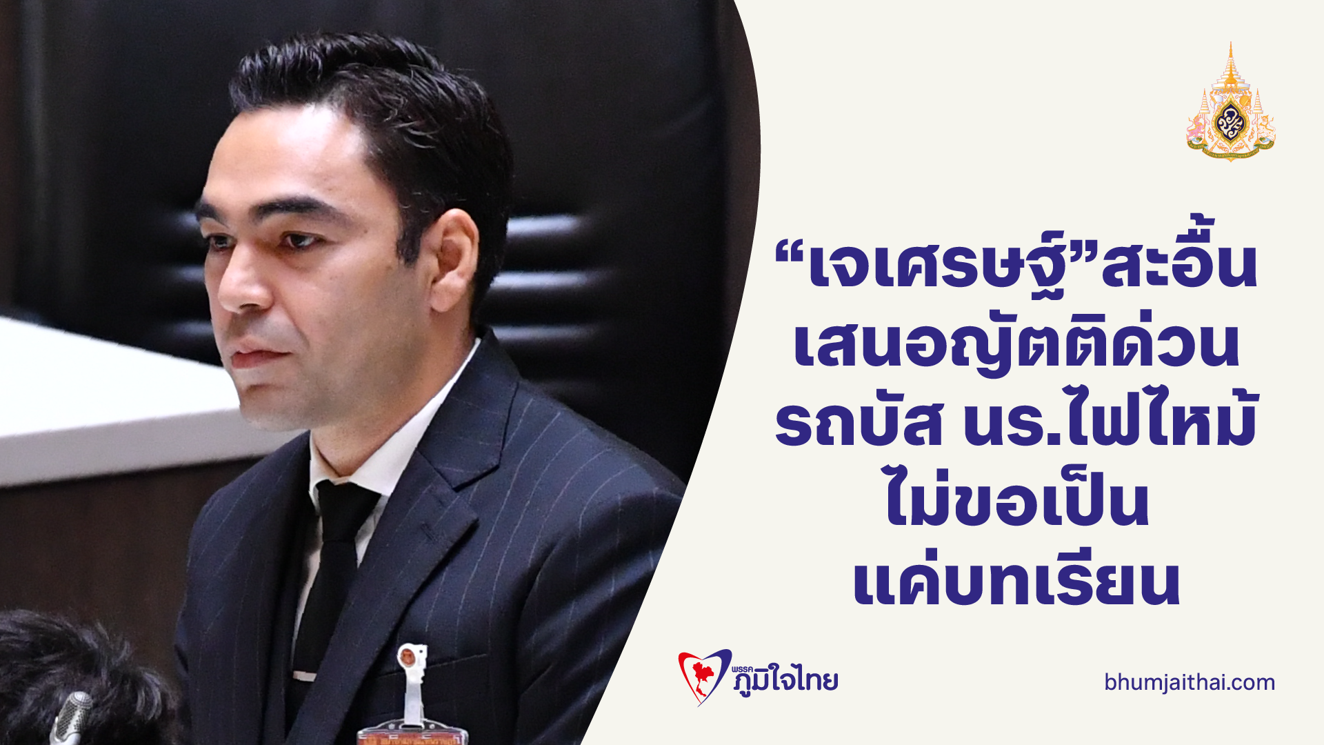 สภาฯ เศร้า “เจเศรษฐ์” เสนอญัตติด่วนด้วยวาจา "รถบัสไฟไหม้" อภิปรายเสียงสะอื้น ไม่ขอแค่เป็นบทเรียน แต่ให้เป็นการเรียนรู้จากเหตุการณ์ หวังรัฐบาลออกมาตรการแก้ไขและป้องกันอย่างเป็นรูปธรรม ไม่ให้เกิดซ้ำแล้วซ้ำเล่า