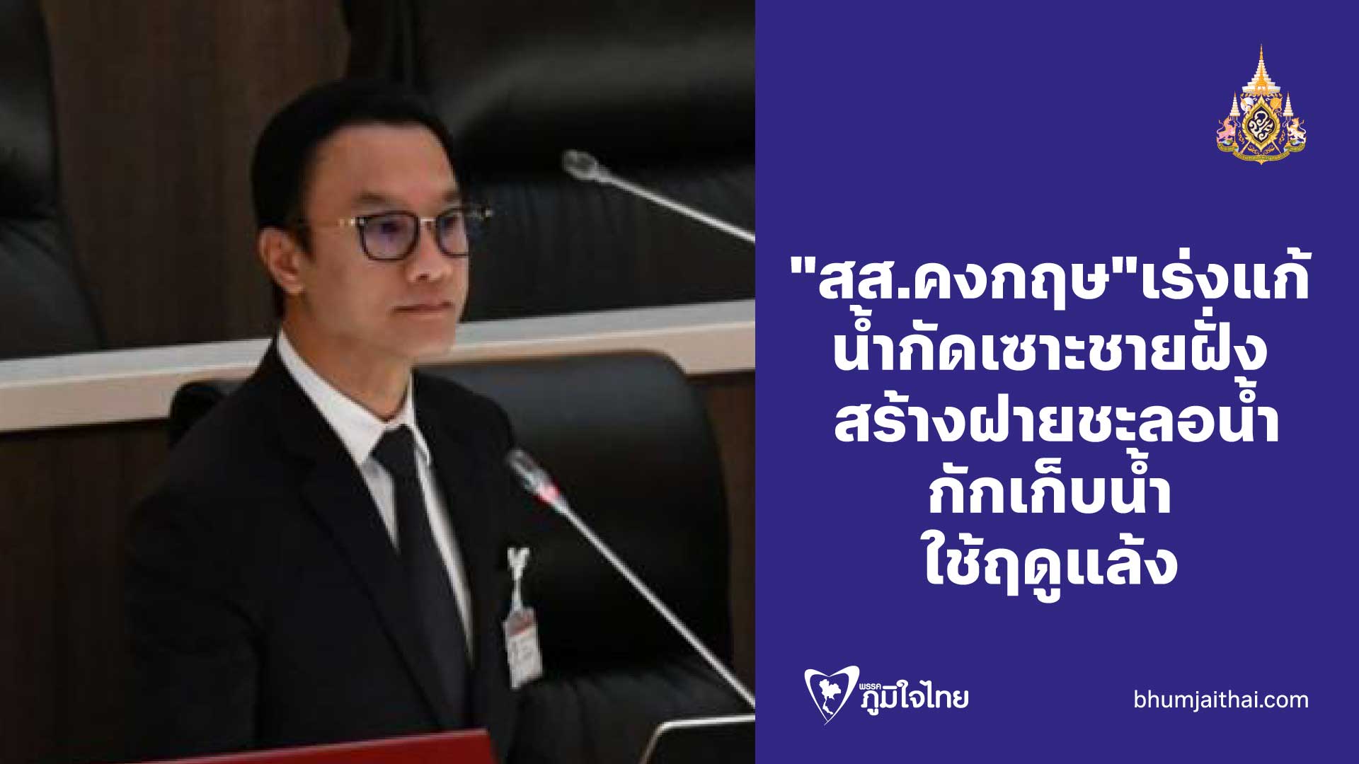 "สส.คงกฤษ"เร่งแก้ น้ำกัดเซาะชายฝั่ง สร้างฝายชะลอน้ำ กักเก็บน้ำ ใช้ฤดูแล้ง