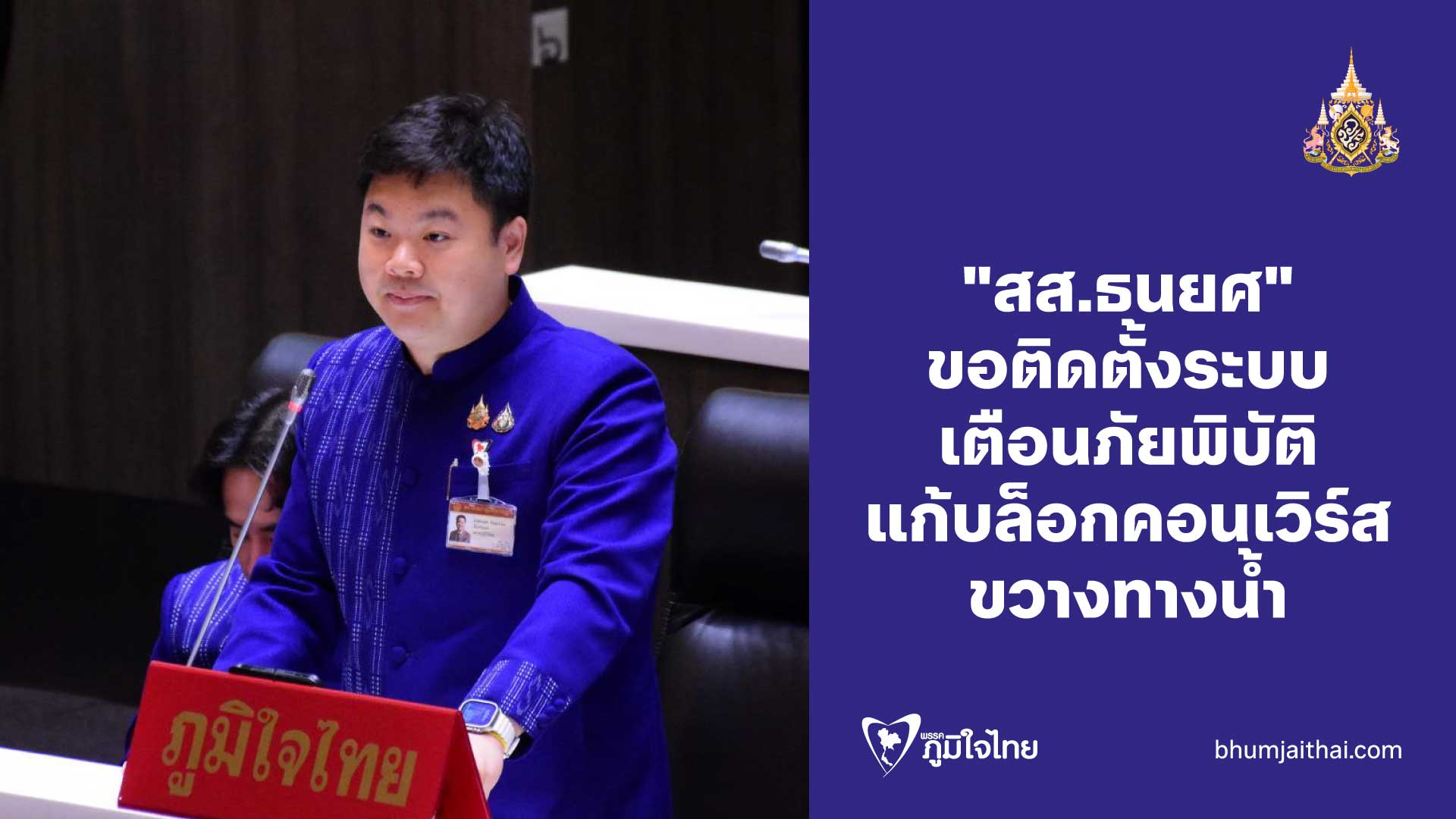 "สส.ธนยศ" ขอติดตั้งระบบแจ้งเตือนภัยพิบัติ แก้บล็อกคอนเวิร์ส ขวางทางน้ำ