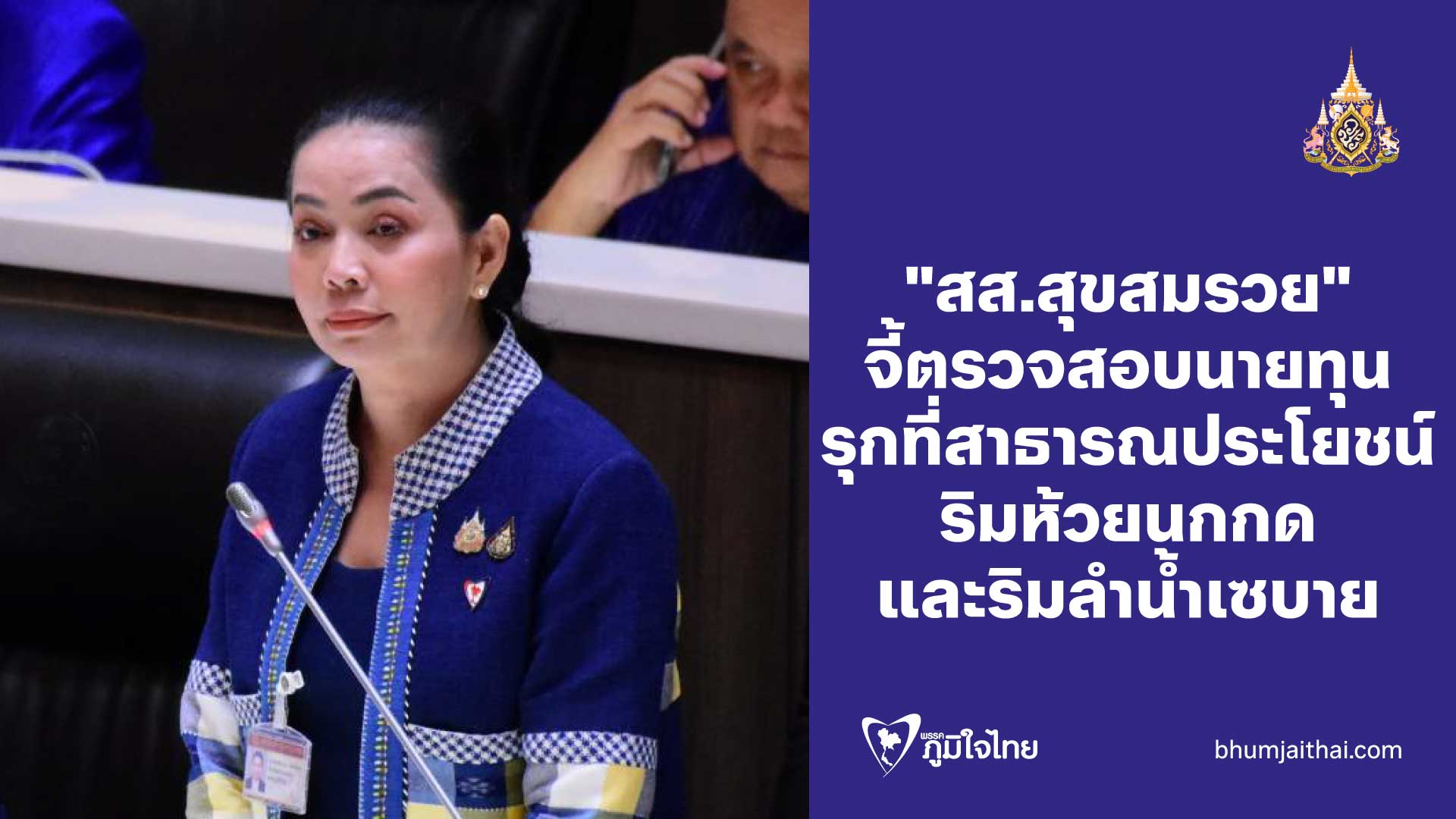 "สส.สุขสมรวย" หารือสภาฯ จี้หน่วยงานรัฐเร่งตรวจสอบ แก้ปัญหานายทุนบุกรุกที่สาธารณประโยชน์หลายร้อยไร่ ริมห้วยนกกด และริมลําน้ำเซบาย หากออกเอกสารสิทธิ์ไม่ถูกต้อง ต้องเพิกถอนโดยเร็ว