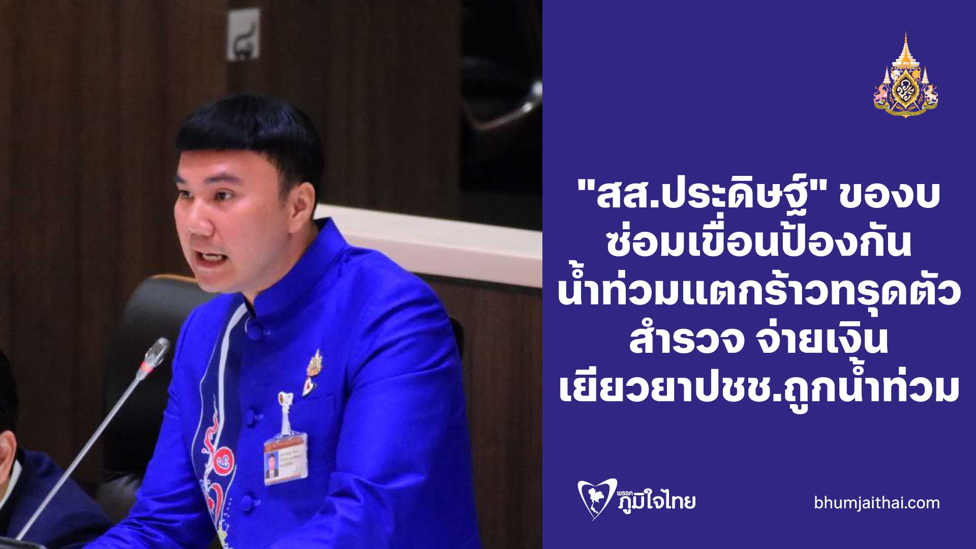 "สส.ประดิษฐ์" ขอจัดงบซ่อมเขื่อนป้องกันน้ำท่วมแตกร้าว ทรุดตัว สำรวจ จ่ายเงินเยียวยาปชช.ถูกน้ำท่วม