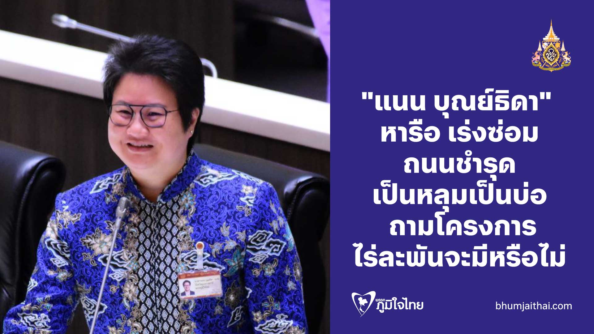 "สส.แนน บุณย์ธิดา" หารือ เร่งซ่อมถนนชำรุด เป็นหลุมเป็นบ่อ ถามโครงการไร่ละ 1 พันจะมีหรือไม่