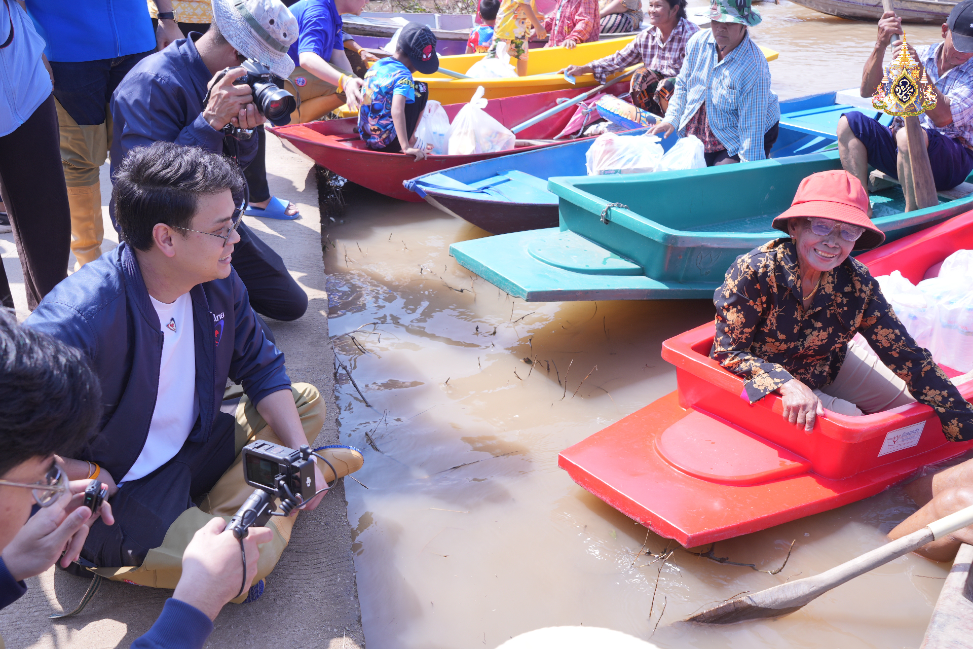 หลังจากนั้น คณะฯ ได้เดินทางไปยังจุดที่ 3 คือหมู่ที่ 1 ต.หัวเวียง ที่มีน้ำท่วมมากกว่าจุดอื่น และบ้านหลายหลังคาเรือนน้ำท่วมถึงหน้าอก ซึ่งชาวบ้านต้องพายเรือมารับสิ่งของอุปโภค บริโภค บางบ้านไม่มีเรือก็ต้องอาศัยเพื่อนบ้านรับสิ่งของแทนเพื่อที่จะกลับไปใช้ในครัวเรือน
