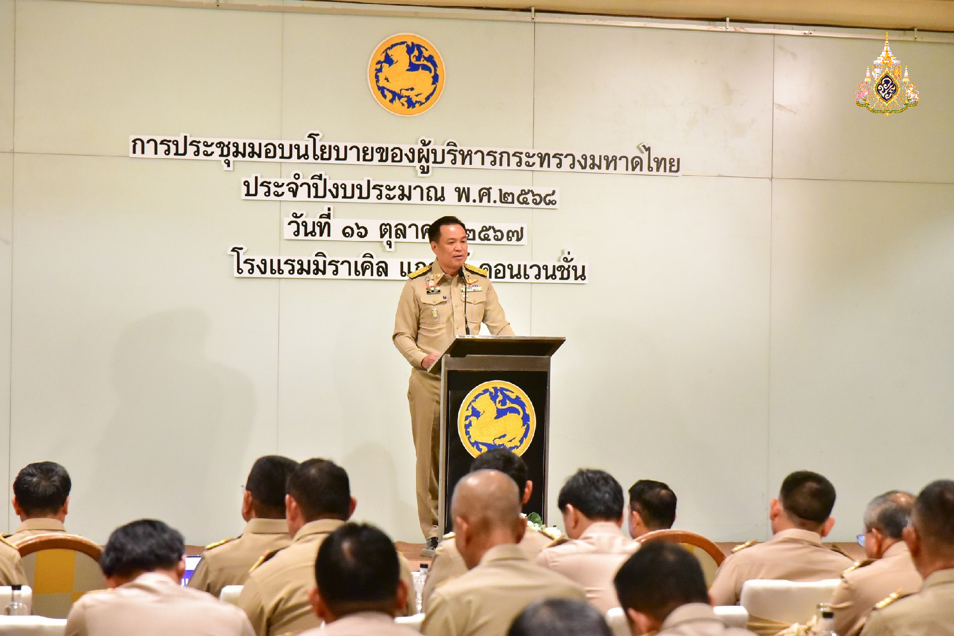 น.ส.ไตรศุลี ไตรสรณกุล โฆษกกระทรวงมหาดไทย เปิดเผยว่า วันนี้ (16 ต.ค. 67) เวลา 10.00 น. นายอนุทิน ชาญวีรกูล รองนายกรัฐมนตรีและ รมว.มหาดไทย เป็นประธานการประชุมมอบนโยบายของผู้บริหารกระทรวงมหาดไทย ประจำปีงบประมาณ พ.ศ. 2568 ที่โรงแรมมิราเคิล แกรนด์ คอนเวนชั่น ถ.วิภาวดีรังสิต กรุงเทพฯ โดยมี นายทรงศักดิ์ ทองศรี รมช.มหาดไทย น.ส.ซาบีดา ไทยเศรษฐ์ รมช.มหาดไทย น.ส.ธีรรัตน์ สำเร็จวาณิชย์ รมช.มหาดไทย นายอรรษิษฐ์ สัมพันธรัตน์ ปลัดกระทรวงมหาดไทย พร้อมผู้บริหารระดับสูง ผู้ว่าราชการจังหวัด และ บุคลากรกระทรวงมหาดไทย ร่วมประชุม