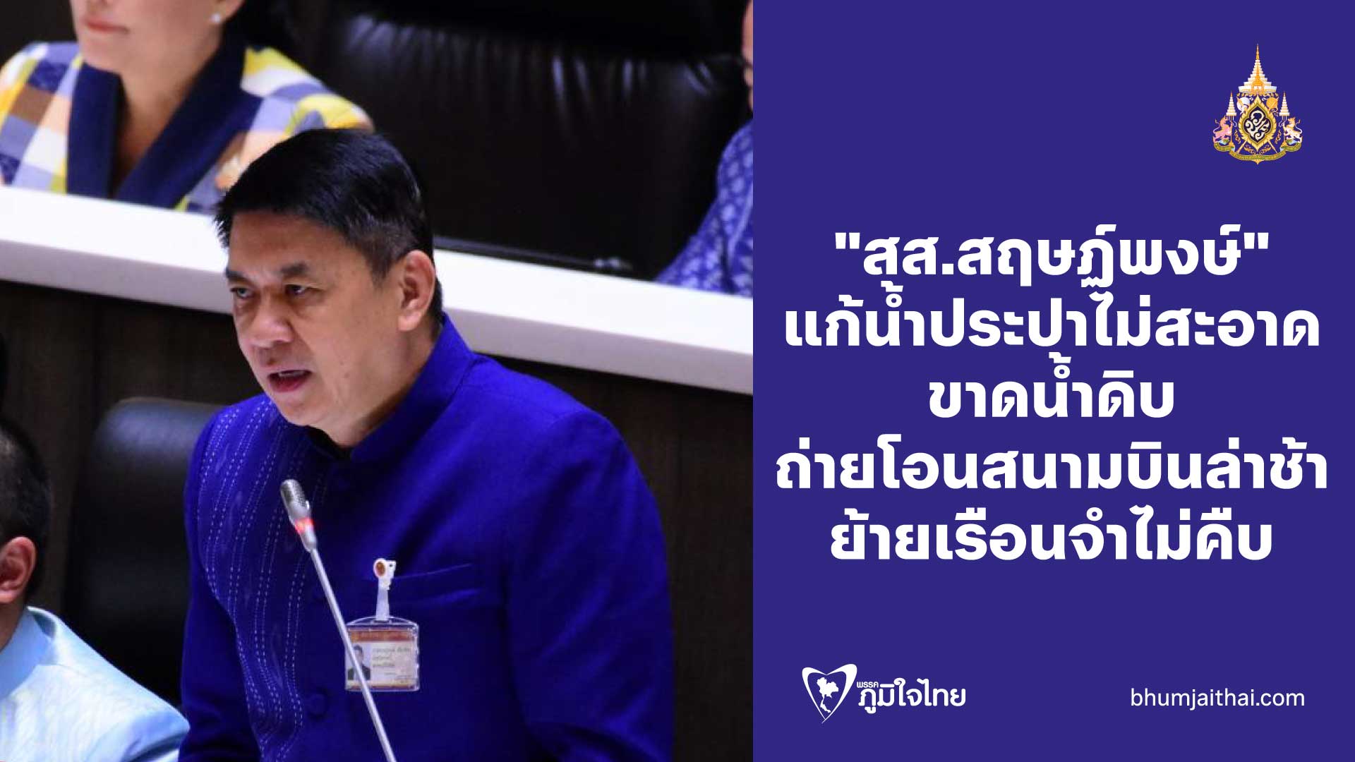 "สุส.สฤษฏ์พงษ์" แก้น้ำประปาไม่สะอาด ขาดน้ำดิบ ถ่ายโอนสนามบินล่าช้า ย้ายเรือนจำไม่คืบ