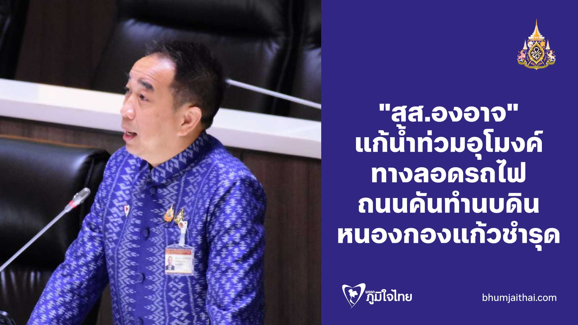 "สส.องอาจ" แก้น้ำท่วมอุโมงค์ ทางลอดรถไฟ ถนนคันทำนบดิน หนองกองแก้วชำรุด