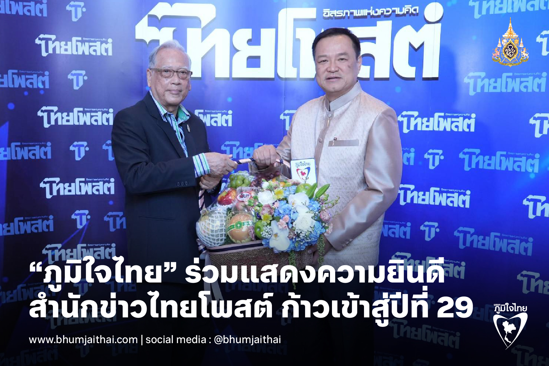 วันที่ 21 ตุลาคม 2567 นายอนุทิน ชาญวีรกูล รองนายกฯ และรัฐมนตรีว่าการกระทรวงมหาดไทย ในฐานะหัวหน้าพรรคภูมิใจไทย, นายพิพัฒน์ รัชกิจประการ รัฐมนตรีว่าการกระทรวงแรงงาน, นายสิริพงศ์ อังคสกุลเกียรติ ผู้ช่วยรัฐมนตรี ว่าการกระทรวงศึกษาธิการ และรองหัวหน้าพรรคภูมิใจไทย และนายคารม พลพรกลาง อดีตรองโฆษกประจำสำนักนายกฯ ร่วมแสดงความยินดีกับ สำนักข่าวไทยโพสต์ ครบรอบ 28 ปี ย่างเข้าสู่ปีที่ 29 โดยมีนายโรจน์ งามแม้น (เปลว สีเงิน) รับมอบกระเช้าของขวัญ และให้การต้อนรับอย่างอบอุ่นด้วยความเป็นกันเอง