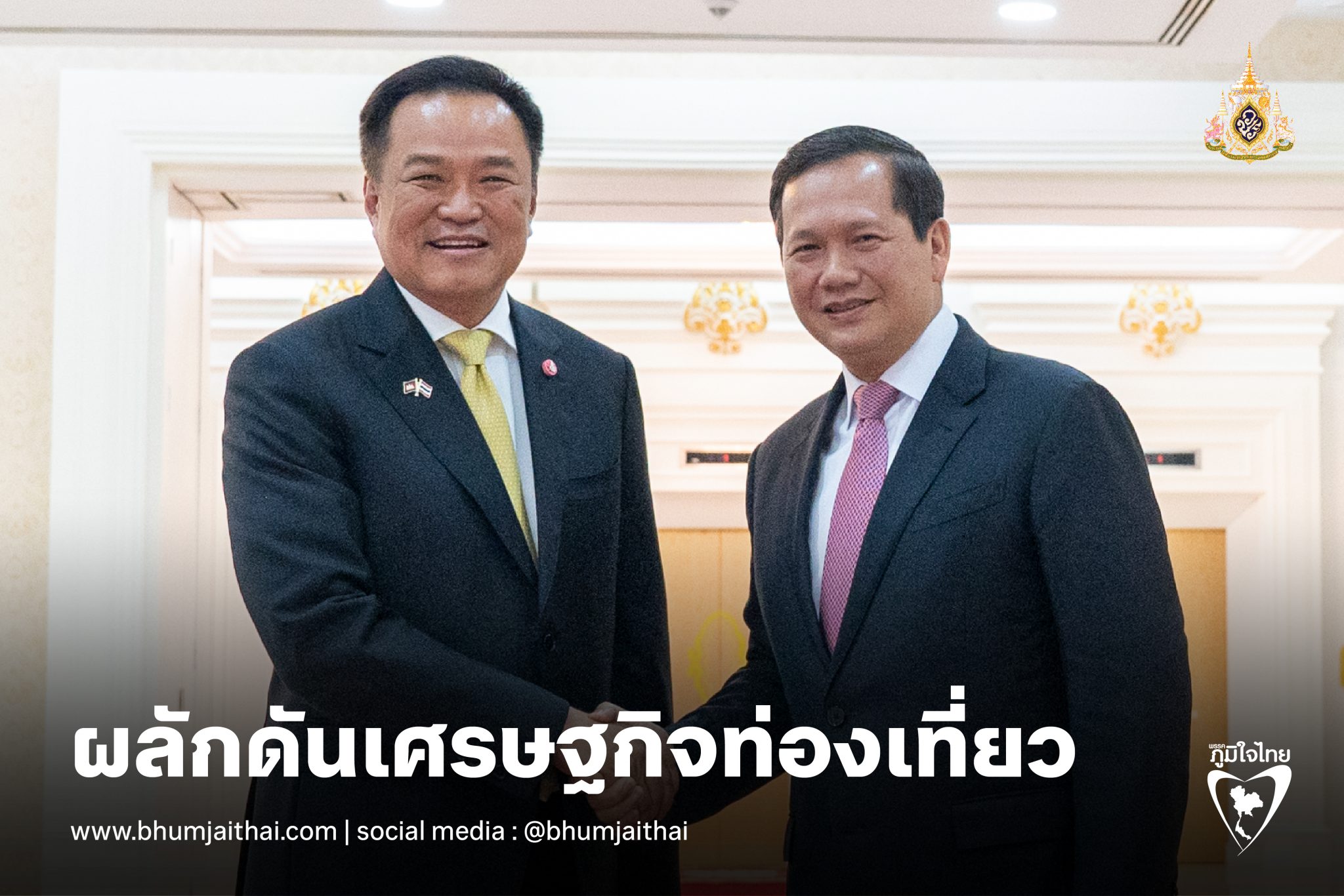 "อนุทิน" นำคณะเข้าพบนายกรัฐมนตรีกัมพูชา ย้ำสัมพันธ์อันแน่นแฟ้น ชูจุดแข็งค้าชายแดน แปลงวัฒนธรรมที่คล้ายคลึงเป็นซอฟท์เพาเวอร์ร่วม ผลักดันเศรษฐกิจท่องเที่ยว เกิดประโยชน์กับประชาชน 2 ประเทศ