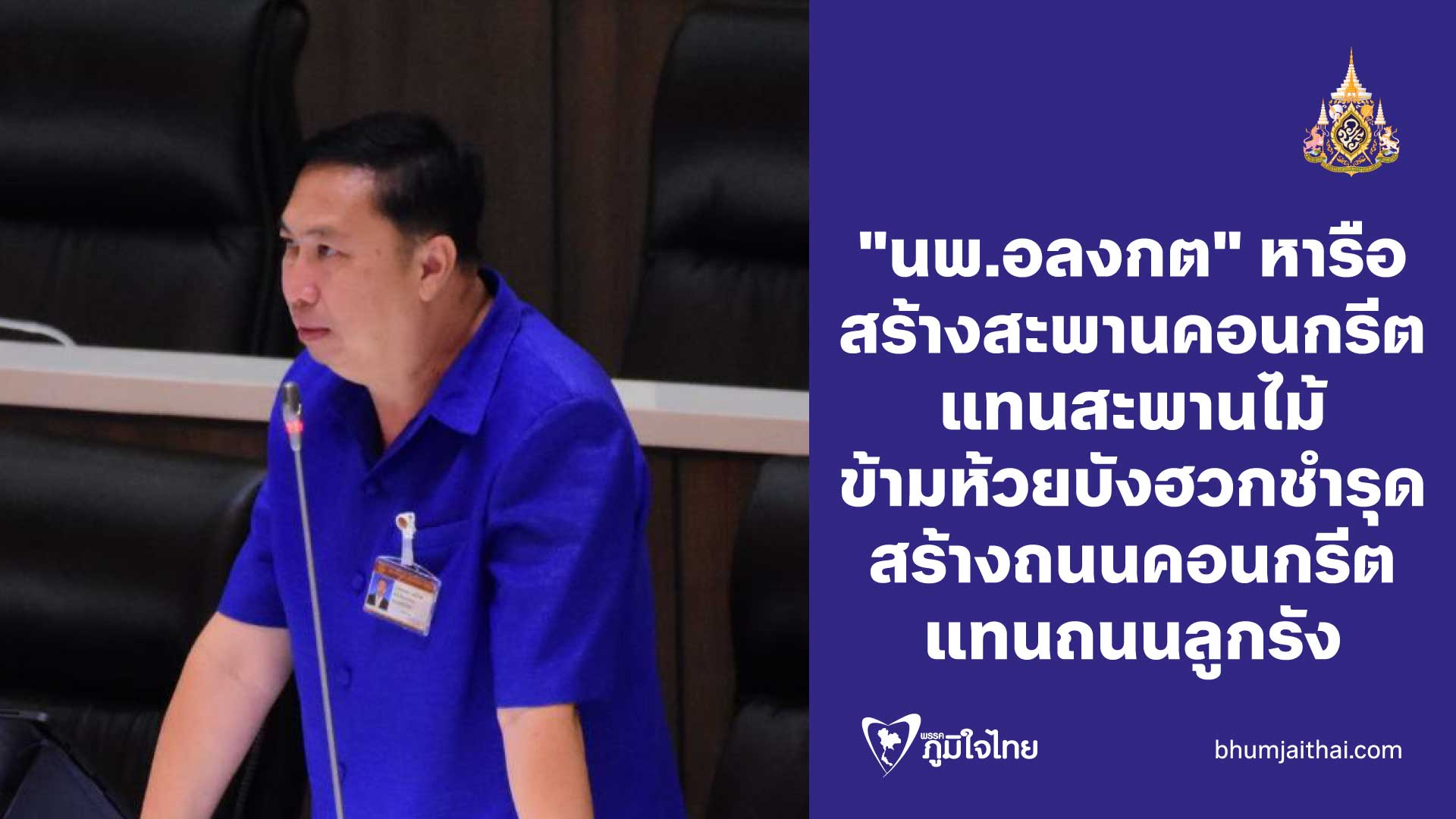 "นพ.อลงกต" หารือสภาฯ ขอกรมโยธาฯ สร้างสะพานคอนกรีตเสริมเหล็กทดแทนสะพานไม้ข้ามห้วยบังฮวกชำรุด พร้อมสร้างถนนคอนกรีต แทนถนนลูกรังที่เป็นหลุมเป็นบ่อทุกปี