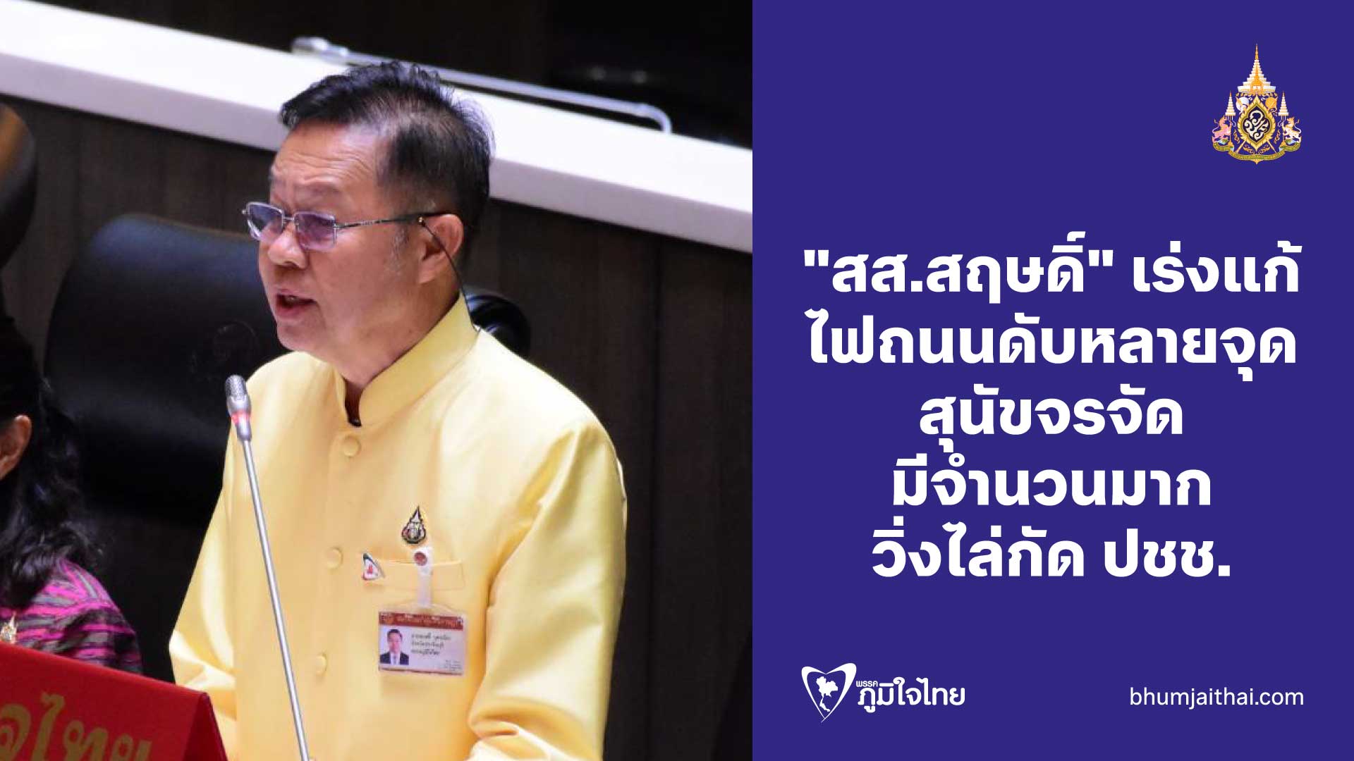 "สส.สฤษดิ์" หารือสภาฯ เร่งติดตั้งและแก้ไฟฟ้าส่องสว่างรายทางดับหลายจุด และถูกโจรลักตัดสายไฟ พร้อมแก้ปัญหาสุนัขจรจัดมีจำนวนมาก วิ่งไล่กัดทำเกิดอุบัติเหตุบ่อยครั้ง