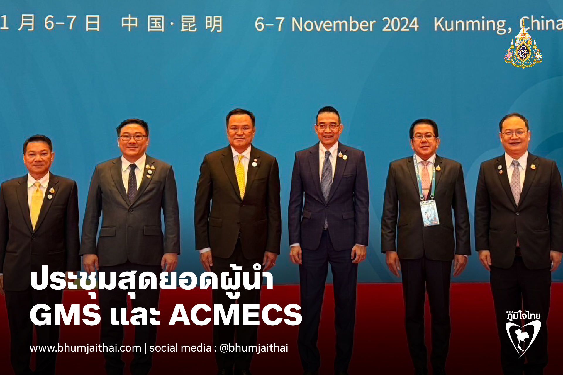"อนุทิน" ร่วมคณะนายกรัฐมนตรีประชุมสุดยอดผู้นำ GMS และ ACMECS ณ นครคุนหมิง เน้นย้ำความมุ่งมั่นของไทยร่วมประเทศสมาชิกในอนุภูมิภาคพัฒนาสังคม เศรษฐกิจที่ยั่งยืน