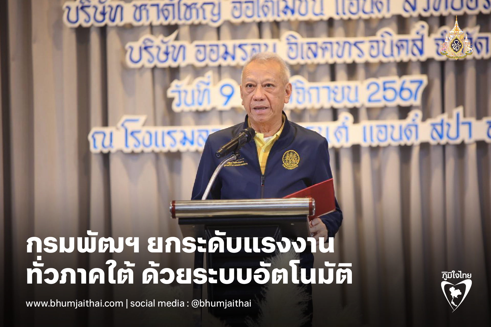 “พิพัฒน์“ พลิกโฉมอุตสาหกรรมภาคใต้ เสริมศักยภาพแรงงานในอนาคต ด้วยระบบอัตโนมัติ กรมพัฒฯยกระดับแรงงานทั่วภาคใต้