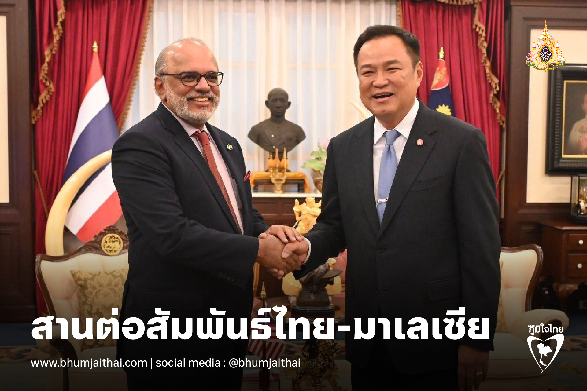"อนุทิน" ต้อนรับเอกอัครราชทูตมาเลเซียประจำประเทศไทยเข้าหารือและอำลาเนื่องในโอกาสพ้นจากหน้าที่ ย้ำพร้อมสานต่อความสัมพันธ์ระหว่างประเทศไทย-มาเลเซีย มุ่งเสริมสร้างยกระดับความมั่นคงและเศรษฐกิจร่วมกัน