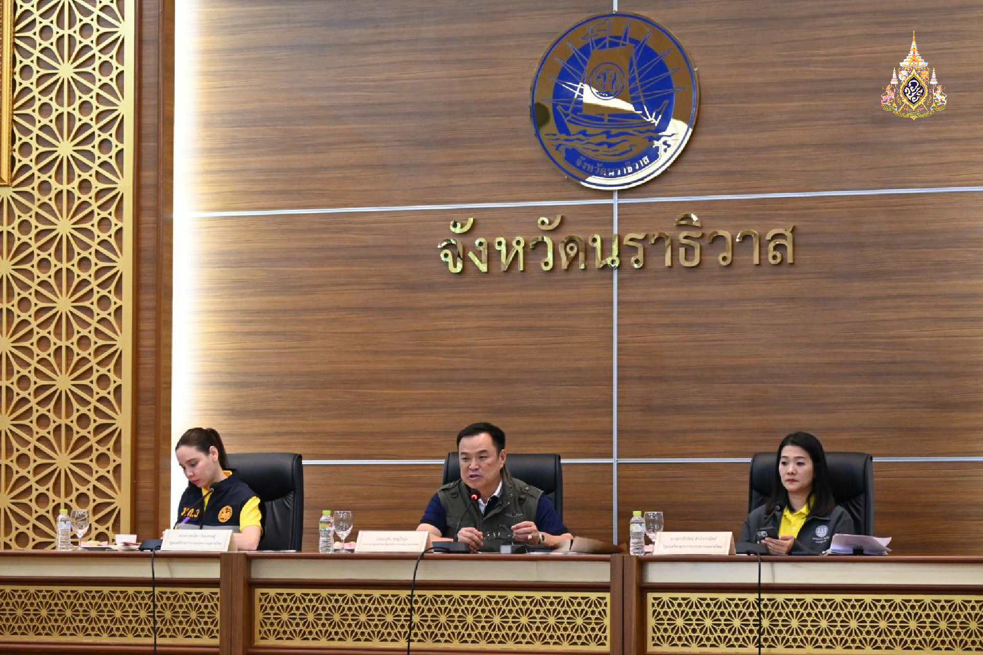 29 พฤศจิกายน 2567 ที่ศาลากลาง จ.นราธิวาส นายอนุทิน ชาญวีรกูล รองนายกรัฐมนตรี และรัฐมนตรีว่าการกระทรวงมหาดไทย พร้อมด้วย นางสาวซาบีดา ไทยเศรษฐ์ รัฐมนตรีช่วยว่าการกระทรวงมหาดไทย น.ส.ธีรรัตน์ สำเร็จวาณิชย์ รมช.มหาดไทย และคณะผู้บริหารกระทรวงมหาดไทย ได้เรียกประชุมส่วนราชการ เพื่อติดตามปัญหาอุทกภัย ก่อนเดินทางลงพื้นที่ประสบภัย เร่งแก้ไขสถานการณ์ ให้กำลังใจเจ้าหน้าที่และประชาชน