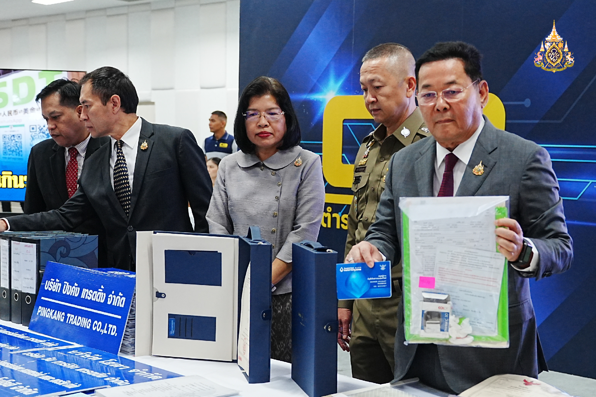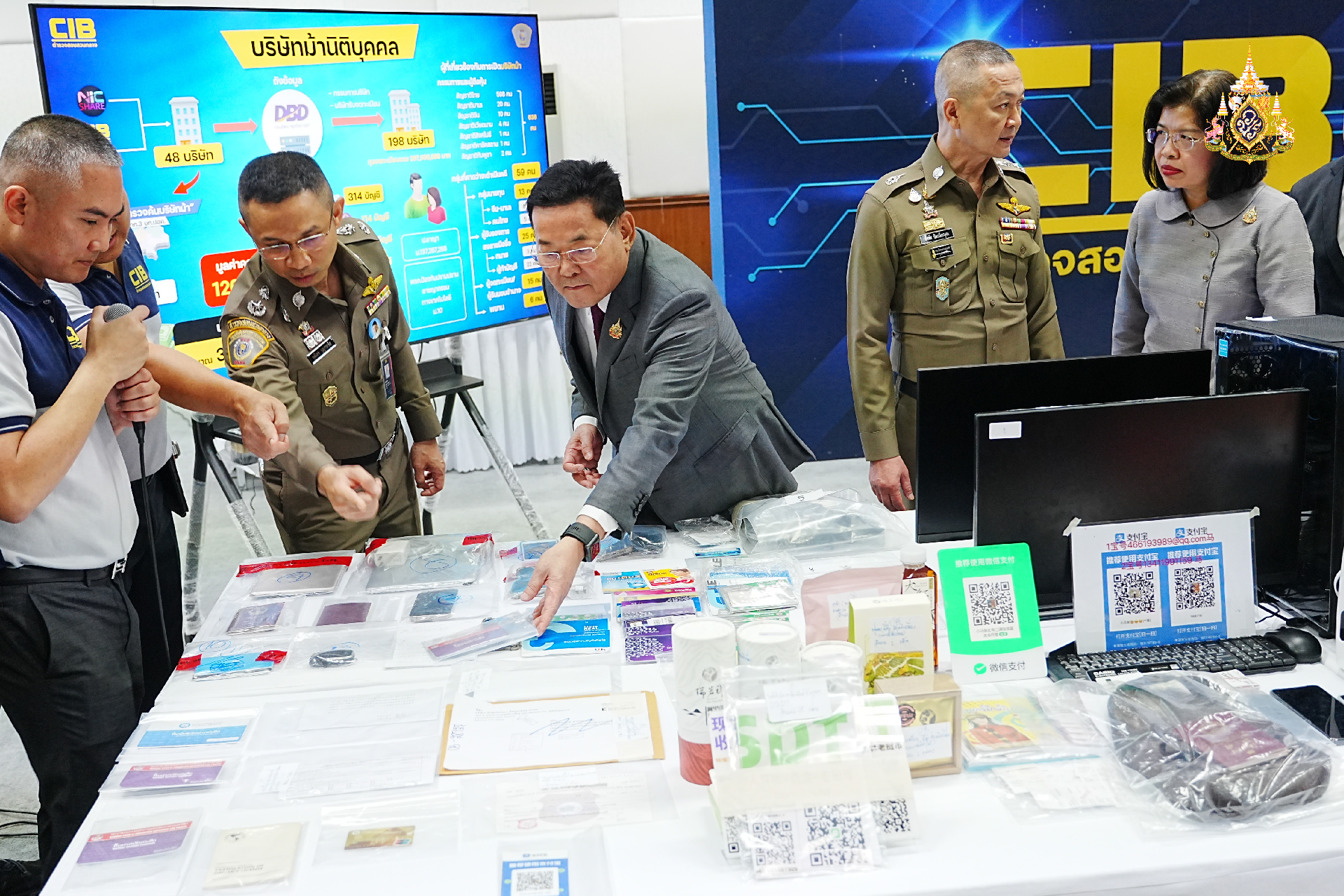 รมช.พณ. กล่าวต่อว่า “การแถลงข่าวครั้งนี้เป็นการจับกุมผู้กระทำผิดที่มีลักษณะนอมินี และบัญชีม้า นิติบุคคล โดยหน่วยงานภายใต้ CIB คือ กองบังคับการปราบปรามการกระทำความผิดเกี่ยวกับอาชญากรรม ทางเศรษฐกิจ (บก.ปอศ.) ได้ตรวจสอบบริษัทนิติบุคคลที่มีแนวโน้มเข้าข่ายการกระทำความผิดร่วมกับกรมฯ พร้อมลงพื้นที่ตรวจค้นในพื้นที่ อาทิ กรุงเทพฯ สมุทรปราการ และสมุทรสาคร พบนิติบุคคลเข้าข่ายกระทำความผิด จำนวนทั้งสิ้น 442 ราย โดยประกอบธุรกิจประเภท ร้านค้า ร้านอาหาร ซุปเปอร์มาร์เก็ต นำเที่ยว โกดัง/คลังสินค้า รับแลกเงินต่างประเทศ/เงินดิจิทัล ถือครองอสังหาริมทรัพย์โดยผิดกฎหมาย และหลายบริษัทไม่มีกิจการอยู่จริง โดยมีแผนประทุษกรรม 2 รูปแบบ 1) การจดทะเบียนบริษัทในลักษณะนอมินีซึ่งคนต่างชาติว่าจ้าง สำนักงานบัญชีจดทะเบียนโดยใช้คนไทยถือหุ้นแทน หรือนอมินีเข้ามาประกอบธุรกิจที่สงวนไว้ตามพระราชบัญญัติ การประกอบธุรกิจของคนต่างด้าว โดยมีนิติบุคคลที่กระทำความผิดจำนวน 244 ราย (บุคคลต่างด้าวสัญชาติจีน 248 ราย ไทย 57 ราย สัญชาติอื่น 14 ราย) ทุนจดทะเบียนรวม 891,000,000 บาท และสำนักงานบัญชี 3 ราย ที่มีส่วนเกี่ยวข้อง และรู้เห็นกับการกระทำความผิด และ 2) การจดทะเบียนบริษัทในลักษณะบัญชีม้านิติบุคคล เพื่อนำไปเปิดบัญชีธนาคารรับโอนผลประโยชน์จาก อาชญากรรมทางเทคโนโลยีหรือฟอกเงินที่ได้จากการ กระทำความผิด มีนิติบุคคลที่กระทำผิดจำนวน 198 ราย (บุคคลต่างด้าวสัญชาติจีน มาเลเซีย (สัญชาติจีน) 8 ราย) และสำนักงานบัญชี 14 ราย ที่มีส่วนเกี่ยวข้องและรู้เห็นกับการกระทำความผิด