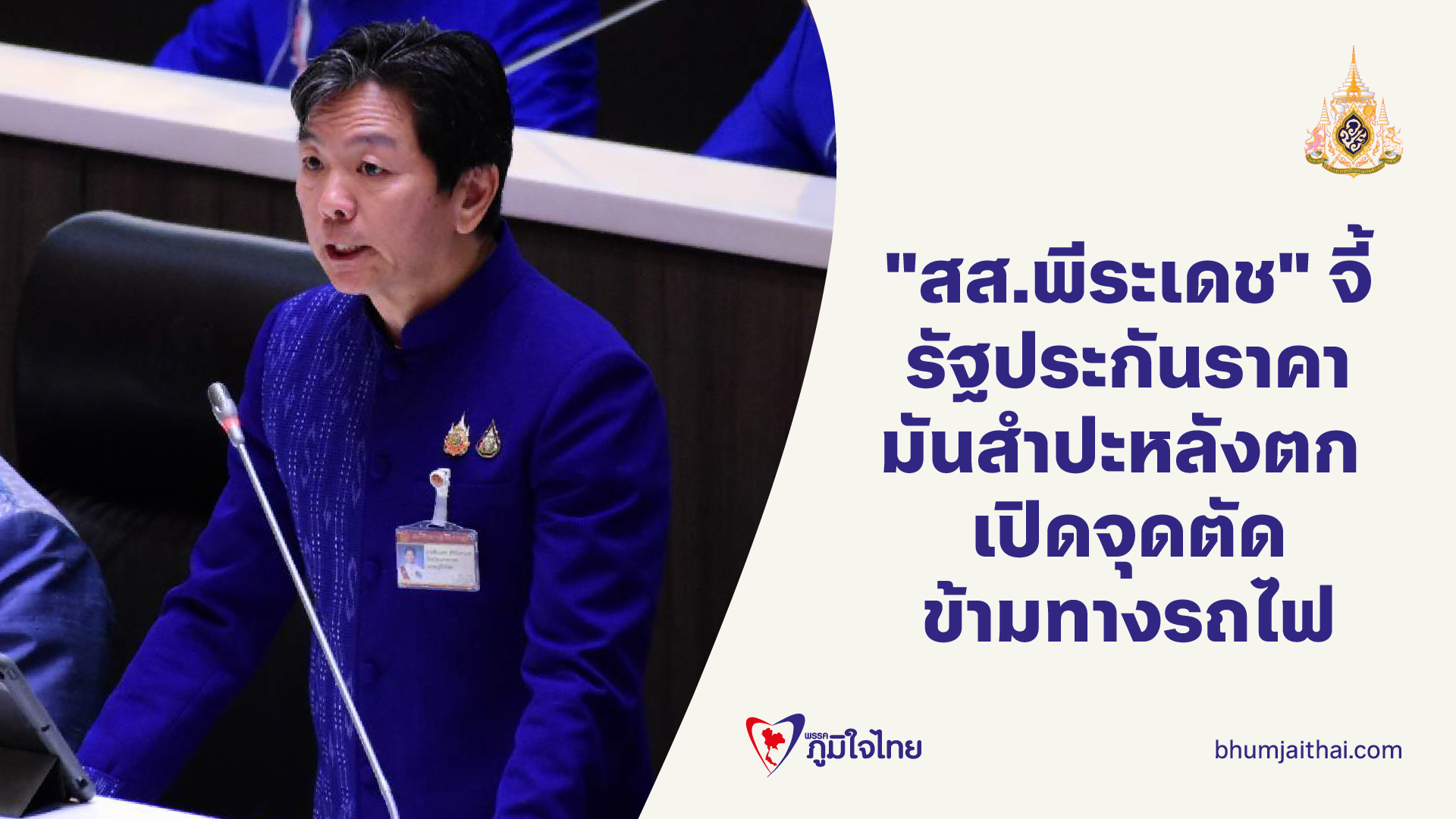 "สส.พีระเดช" จี้แก้ราคามันสําปะหลังตก ขอประกันรายได้ เปิดจุดตัดข้ามทางรถไฟ