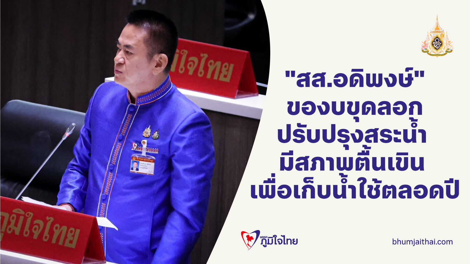 "สส.อดิพงษ์" หารือสภาฯ ขอหน่งวยงานจัดสรรงบฯ ขุดลอกและปรับปรุงสระน้ำ มีสภาพตื้นเขิน เพื่อกักเก็บน้ำใช้ตลอดปี