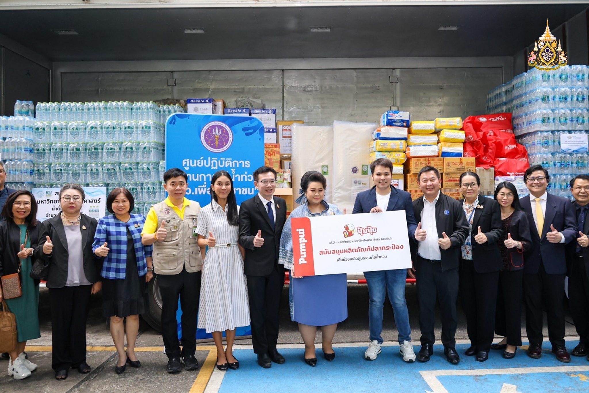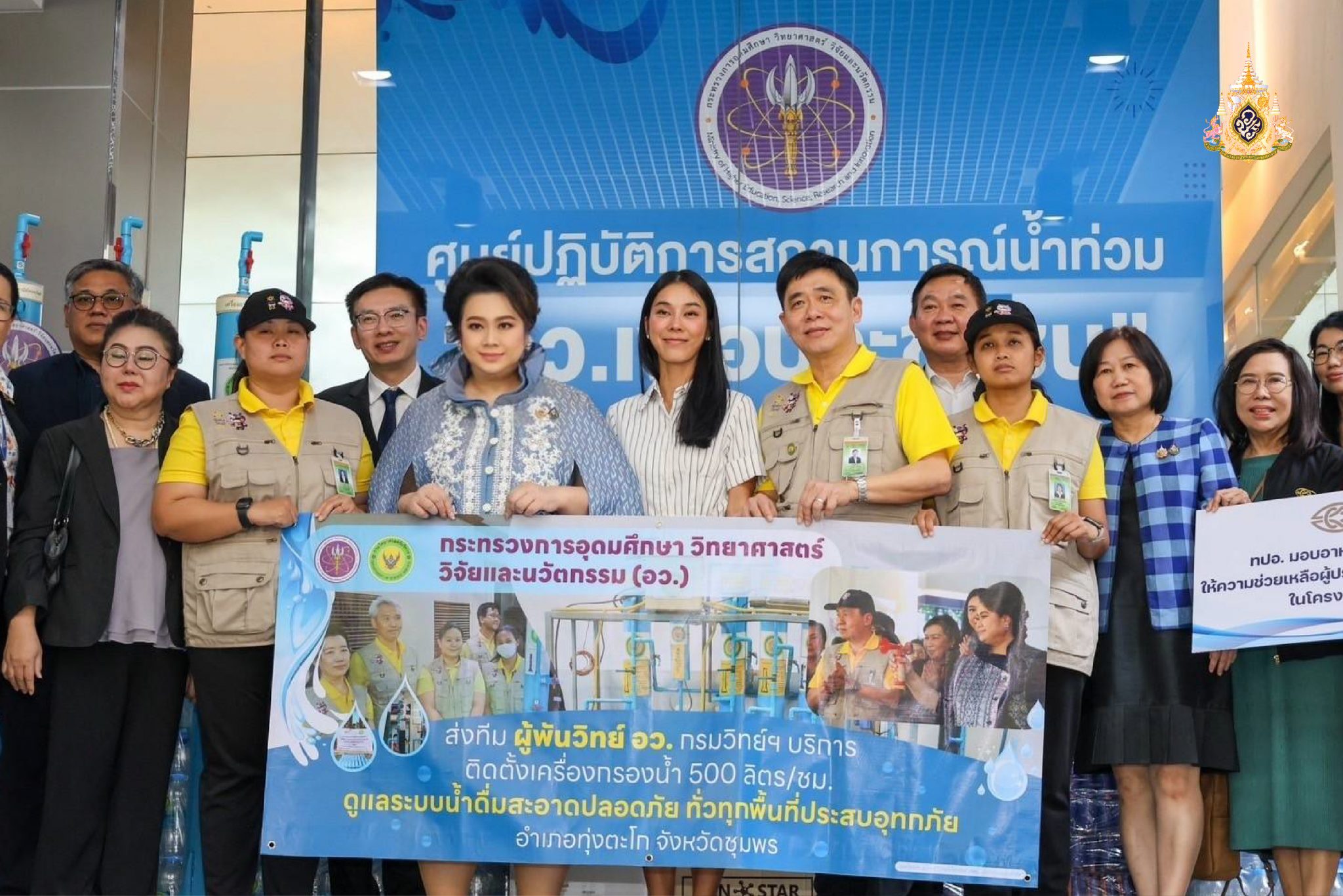น.ส.ศุภมาส กล่าวว่า กระทรวง อว. โดยศูนย์ปฏิบัติการสถานการณ์น้ำท่วม “อว. เพื่อประชาชน” ได้มีการระดมสรรพกำลังจากทุกหน่วยงานรวมทั้งมีสิ่งของจากสถาบันอุดมศึกษา และภาคีเครือข่ายภาครัฐและเอกชน อาทิ Ascott Embassy Sathorn Bangkok สวทช. TCELS GISTDA สสน. มหาวิทยาลัยเกษตรศาสตร์ บริษัท ผลิตภัณฑ์อาหารกว้างไพศาล จำกัด (มหาชน) (ปุ้มปุ้ยปลายิ้ม) และบริษัทไทยนครพัฒนา จำกัด ที่สนับสนุนนำสิ่งของบริจาคประกอบด้วย น้ำดื่ม ข้าวสาร แพมเพิสผู้ใหญ่ อาหารสำเร็จรูป ปลากระป๋อง บะหมี่กึ่งสำเร็จรูป ยาและเวชภัณฑ์ โดยจัดเป็นถุงยังชีพเพื่อให้การช่วยเหลือบรรเทาพี่น้องประชาชนที่ได้รับความเดือดร้อนโดยเร็วที่สุด โดยจะปล่อยรถบรรทุกลำเลียงสิ่งของที่ได้รับการสนับสนุนเพื่อมอบให้แก่พี่น้องผู้ประสบภัยน้ำท่วมในเบื้องต้น ที่ จ.ชุมพร รวมถึงพื้นที่ใกล้เคียงที่ได้รับผลกระทบ