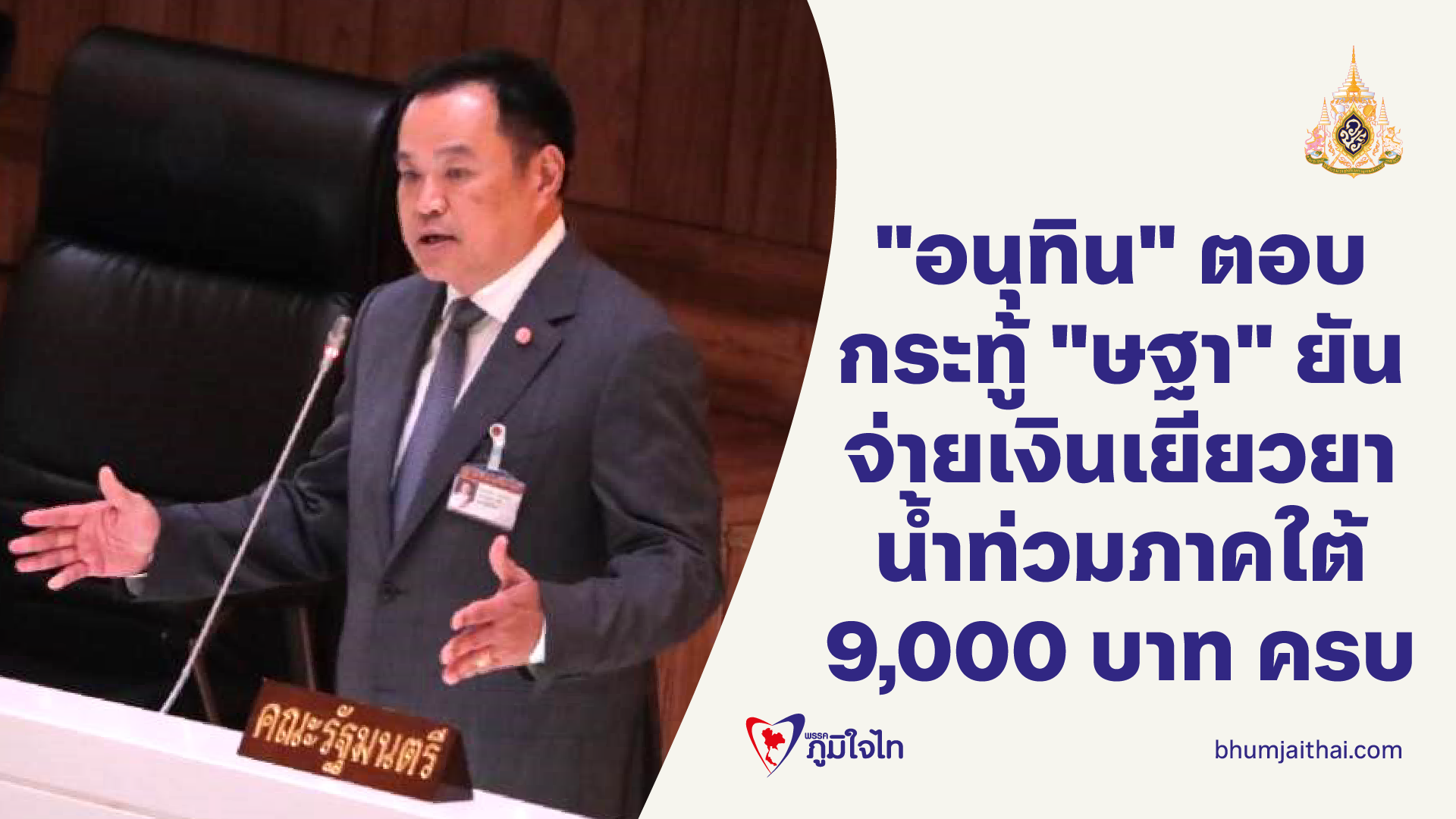 "อนทิน" ตอบ กระทู้ "ษฐา" ยัน จ่ายเงินเยียวยา น้ำท่วมภาคใต้ 9,000 บาท ครบ