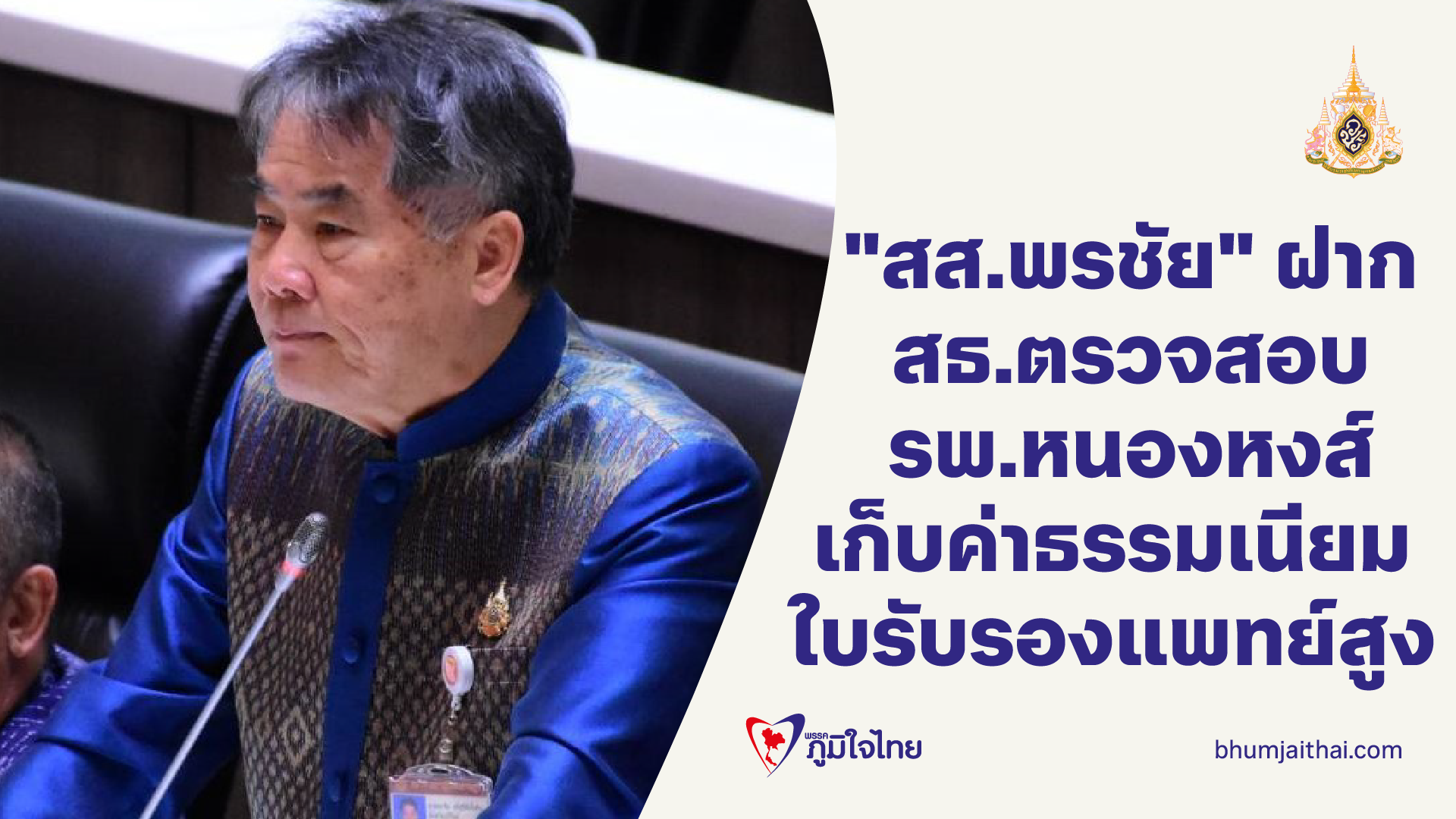"สส.พรชัย" ฝากสธ.ตรวจสอบรพ.หนองหงส์เก็บค่าธรรมเนียมใบรับรองแพทย์สูง
