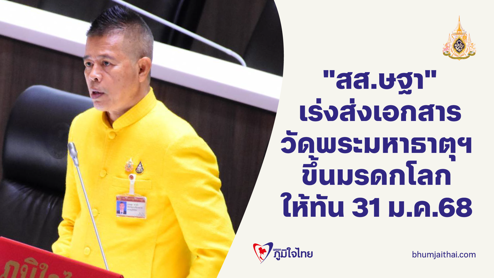 "สส.ษฐา" เร่งส่งเอกสาร วัดพระมหาธาตุฯ ขึ้นมรดกโลก ให้ทัน 31 ม.ค.68