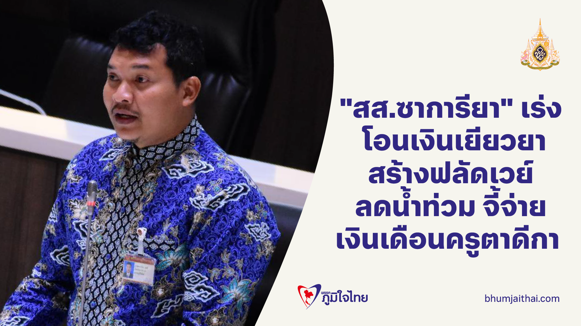 "สส.ซาการียา" เร่ง โอนเงินเยียวยา สร้างฟลัดเวย์ ลดน้ำท่วม จี้จ่าย เงินเดือนครูตาดีกา