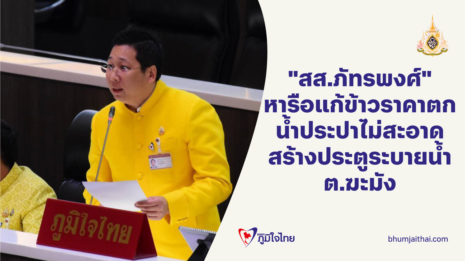 "สส.ภัทรพงศ์" หารือสภาฯ แก้ปัญหาราคาข้าวตกต่ำ น้ำประปาหมู่บ้านไม่สะอาด และขยายให้ครอบคลุมทั้งจังหวัด พร้อมเร่งผลักดันสร้างประตูระบายน้ำ ต.ฆะมัง