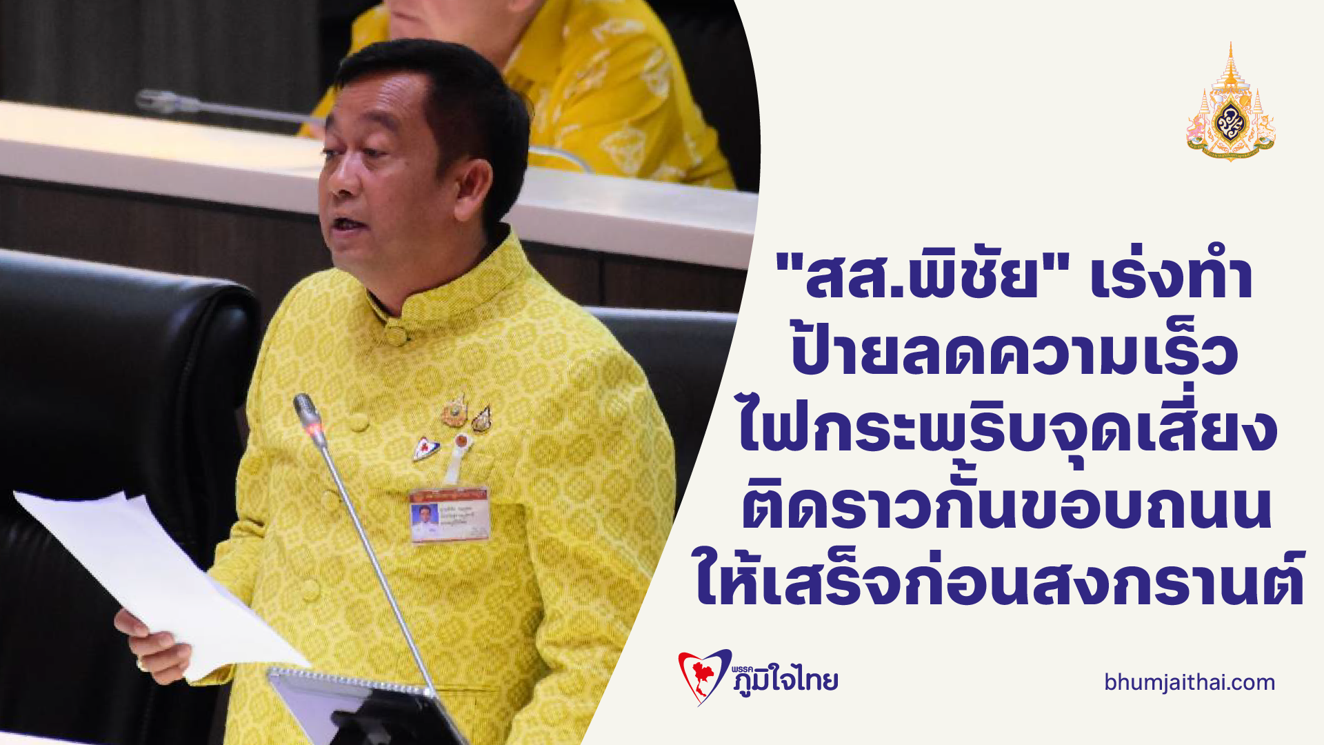 "สส.พิชัย" หารือสภาฯ เร่งทำป้ายเตือนลดความเร็ว ติดตั้งไฟกระพริบในจุดเสี่ยง ติดราวกั้นขอบถนน ให้แล้วเสร็จก่อนสงกรานต์ หลังช่วงปีใหม่เกิดอุบัติเหตุมีผู้เสียชีวิตและบาดเจ็บจำนวนมาก