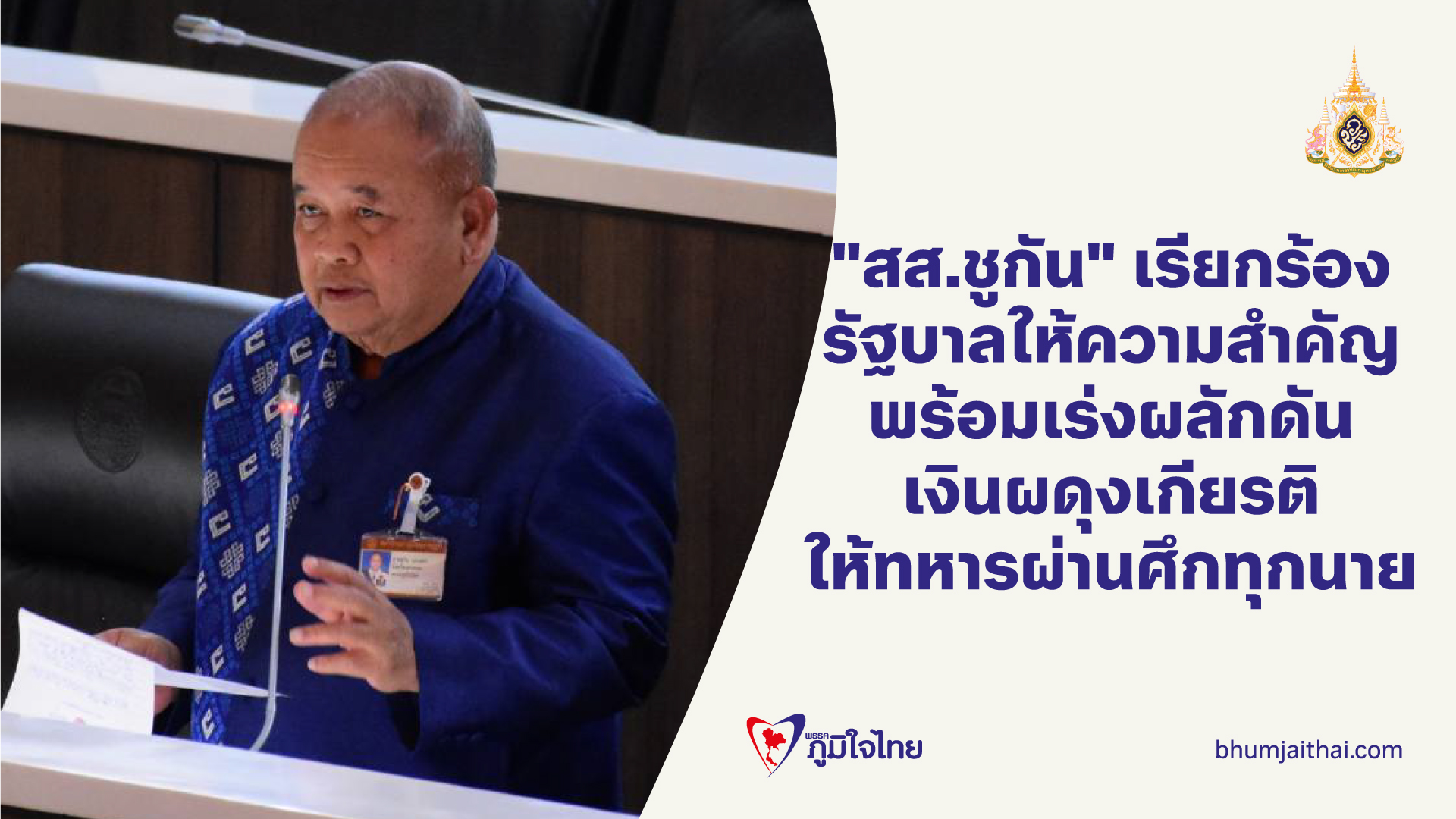 "สส.ชูกัน" หารือสภาฯ เรียกร้องรัฐบาลให้ความสำคัญ พร้อมเร่งผลักดันเงินผดุงเกียรติให้ทหารผ่านศึกทุกนาย