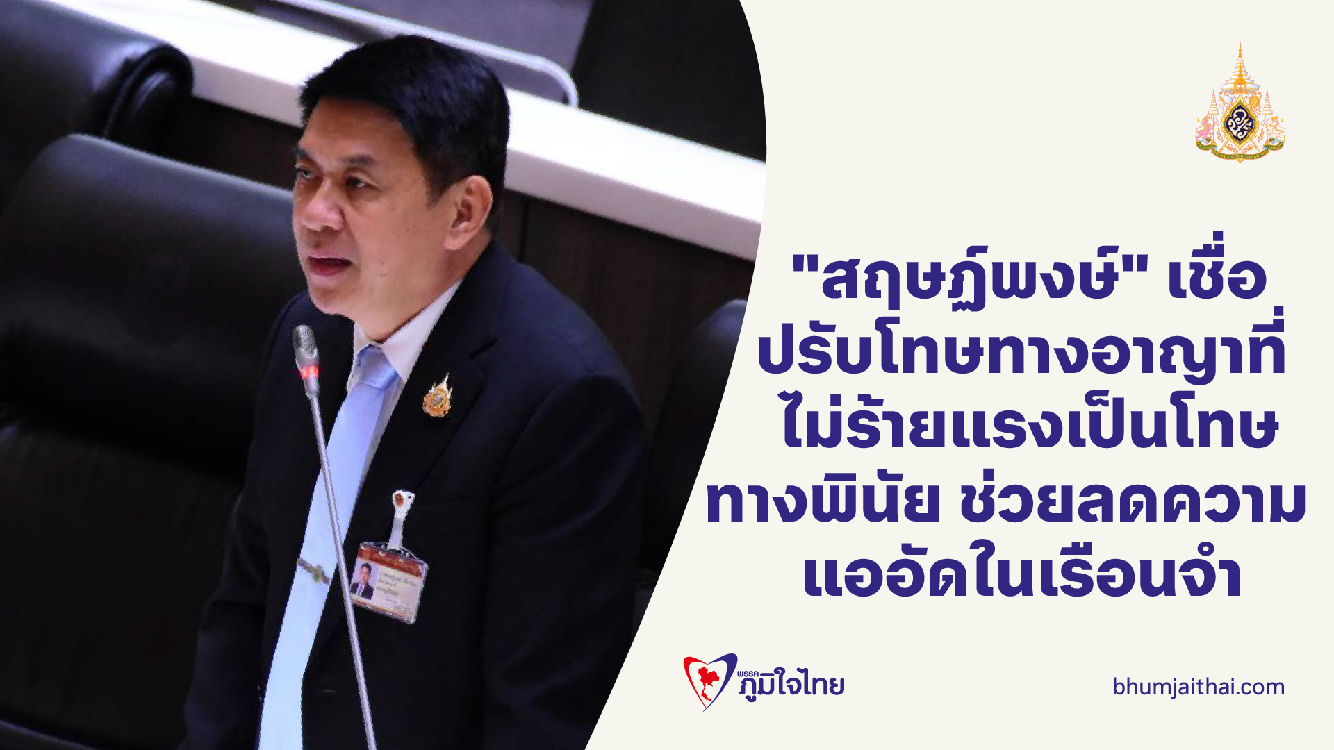 "สฤษฏ์พงษ์" เชื่อ ปรับโทษทางอาญาที่ไม่ร้ายแรงเป็นโทษทางพินัย ช่วยลดความแออัดในเรือนจำ ลดภาระทางสังคม ขอรัฐบาลเร่งพัฒนากฎหมายให้เหมาะสมกับยุคสมัย