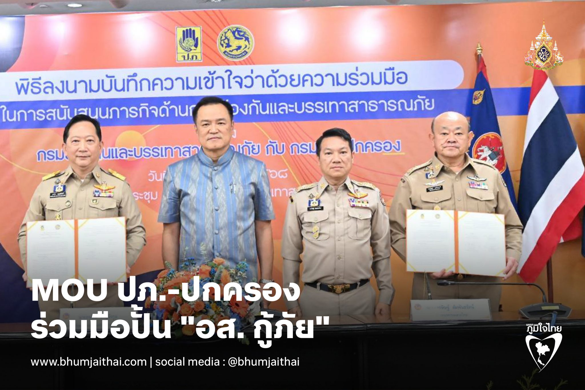 "อนุทิน" เป็นประธาน MOU ปภ.-ปกครอง ร่วมมือปั้น "อส. กู้ภัย" สนับสนุนภารกิจป้องกันและบรรเทาสาธารณภัยให้มีศักยภาพสูงสุด