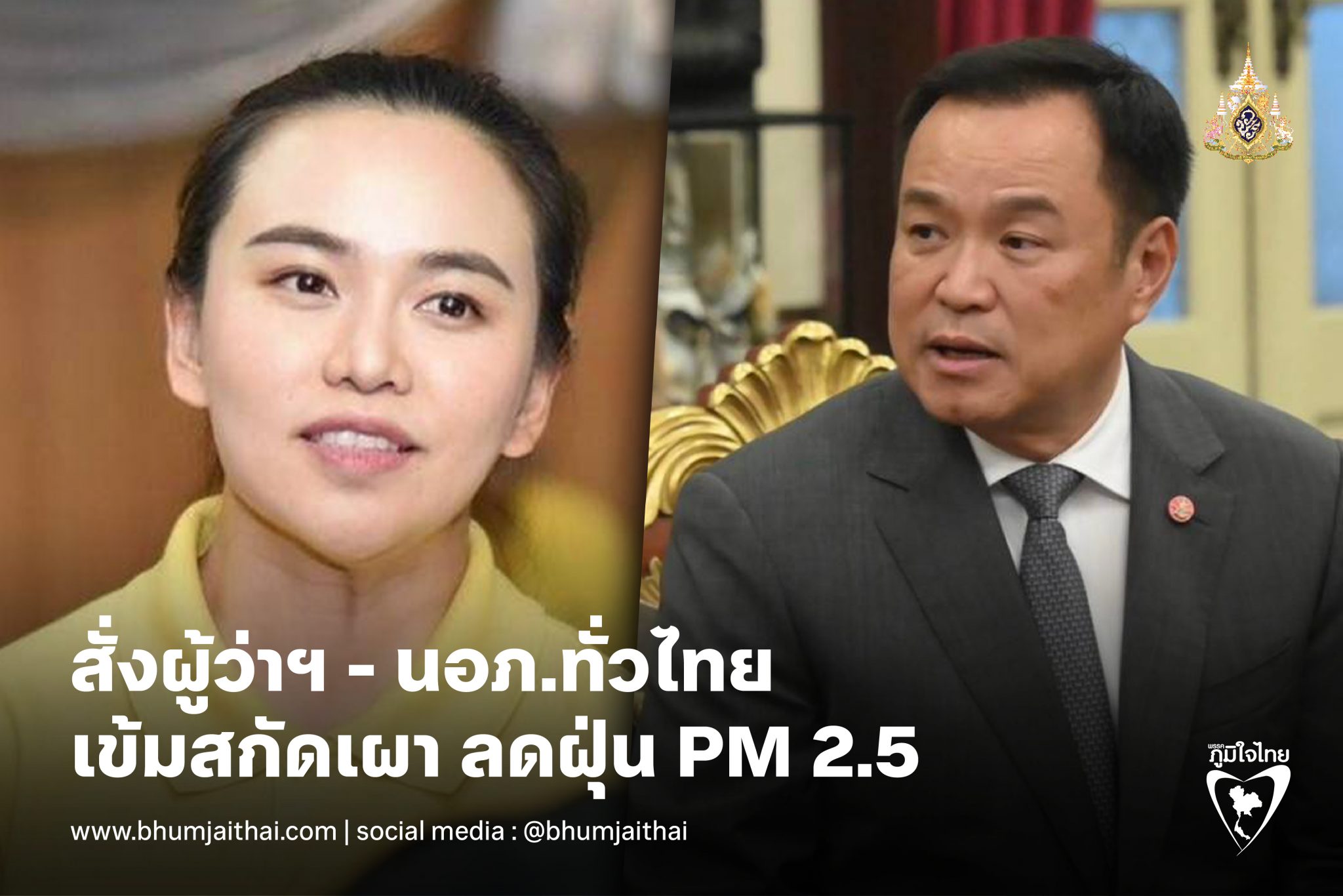 "อนุทิน" สั่งการผู้ว่าฯ นายอำเภอทั่วประเทศออกมาตรการสกัดการเผา ลดฝุ่น PM 2.5 จากต้นตอ ลงพื้นที่ตรวจเข้มพบฝ่าฝืนดำเนินคดีเด็ดขาด