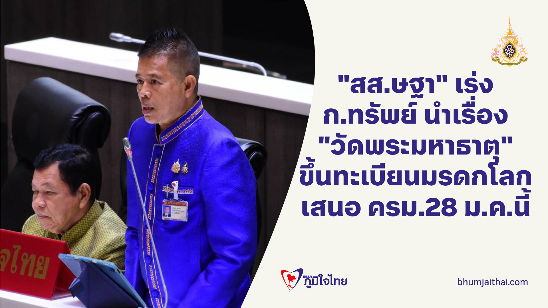 "สส.ษฐา" เร่ง ก.ทรัพย์ นำเรื่อง "วัดพระมหาธาตุ" ขึ้นทะเบียนมรดกโลก เสนอ ครม.28 ม.ค.นี้