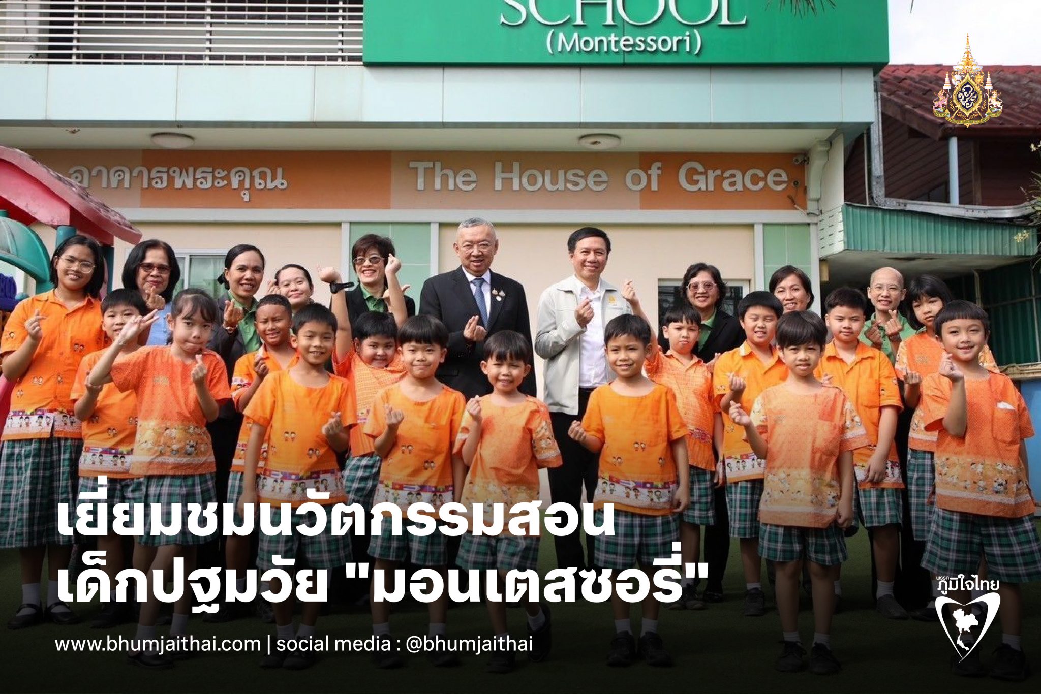 โดย รมว.ศธ. และคณะ ได้เยี่ยมชมการจัดการเรียนการสอนด้วยระบบมอนเตสซอรี่ ซึ่งครูคือหัวใจสำคัญในการสร้างบรรยากาศการเรียน การจัดกระบวนการเรียนการสอน การประเมินเด็ก และพัฒนาตามวัย โดยครูจะจัดสภาพแวดล้อมอย่างเป็นธรรมชาติ เพื่อเตรียมเด็กปฐมวัย ด้วยความสุขในการเรียนรู้ของวัยเตรียมอนุบาล เพื่อเตรียมความพร้อมในการเรียนรู้สู่อนุบาล ให้มีวินัยและช่วยเหลือตนเองในกิจวัตรประจำวันได้เหมาะสมวัยและมั่นใจ ส่วนชั้น ป. 1-2 และชั้น ป. 3 - 6 เน้นให้ความรู้ ศึกษาค้นคว้า และสร้างประสบการณ์นอกห้องเรียนผ่านโครงงาน เพื่อสร้างสมรรถนะการสื่อสาร คิดวิเคราะห์ จำแนกได้ พร้อมเน้นการแสดงออกด้านภาวะอารมณ์ และอยู่ร่วมกับ สอนการดูแลตัวเอง ผู้อื่นในสังคม