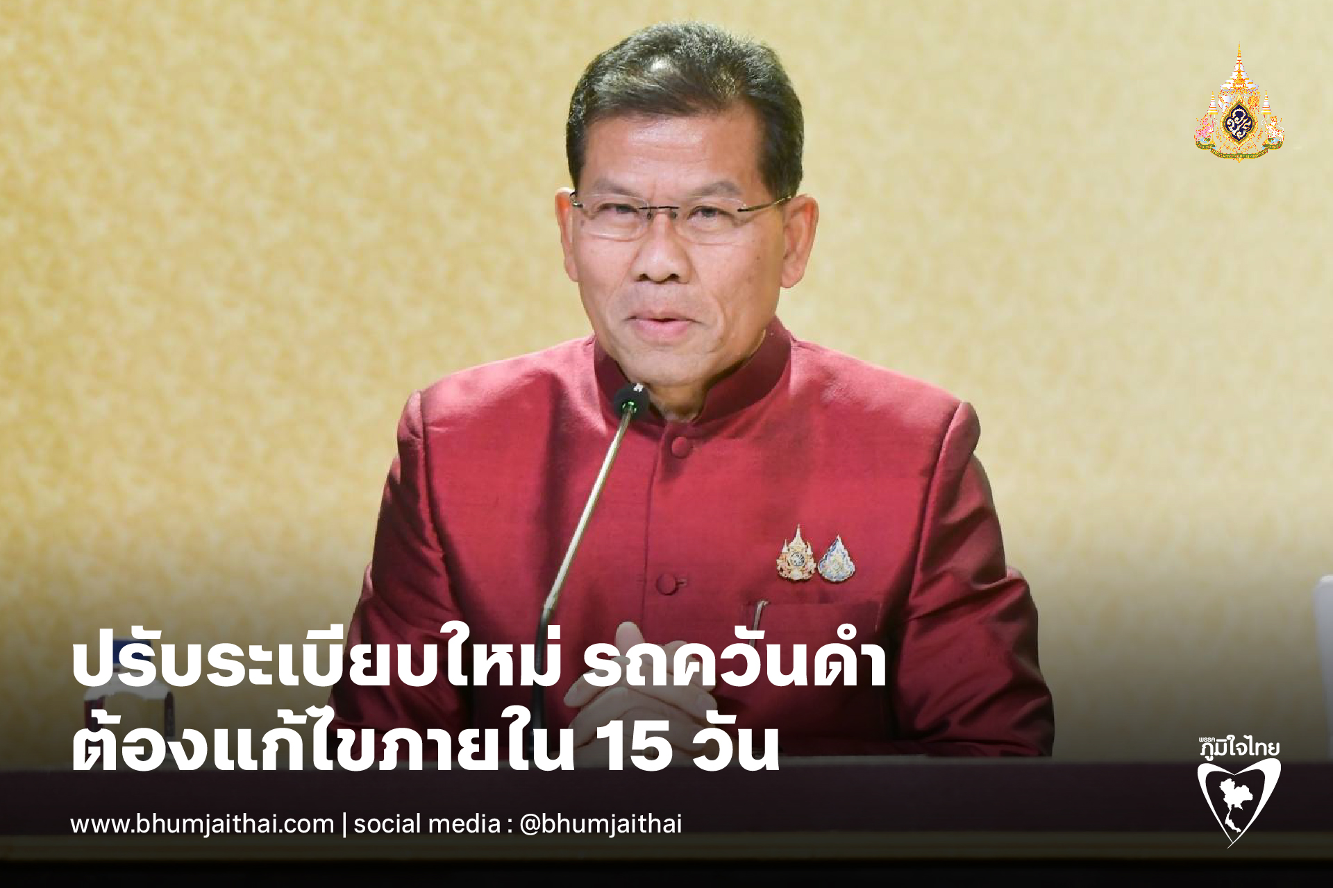 “การกำหนดระยะเวลาให้เจ้าของรถที่ปล่อยควันดำเกินมาตรฐานต้องนำรถไปปรับปรุงภายใน 15 วัน (จากเดิม 30 วัน) ซึ่งจะเริ่มดำเนินการตั้งแต่วันนี้เป็นต้นไป โดยการบังคับใช้กฎหมายดังกล่าว มีเป้าหมายสำคัญเพื่อลดการก่อมลพิษ และปัญหาฝุ่นละอองPM2.5 อีกทั้งเป็นการลดระยะเวลาในการปรับปรุงเครื่องยนต์ เพื่อเร่งให้เจ้าของรถดำเนินการแก้ไขโดยเร็ว ลดการเพิกเฉยต่อคำสั่งห้ามใช้ ช่วยลดโอกาสที่ผู้ขับขี่จะนำรถที่ถูกสั่งห้ามใช้ออกมาวิ่งบนถนนในช่วงที่ยังไม่ได้รับการแก้ไข และอาจถูกยกเลิกทะเบียนในการใช้ยานพาหนะดังกล่าว นายคารม ระบุ