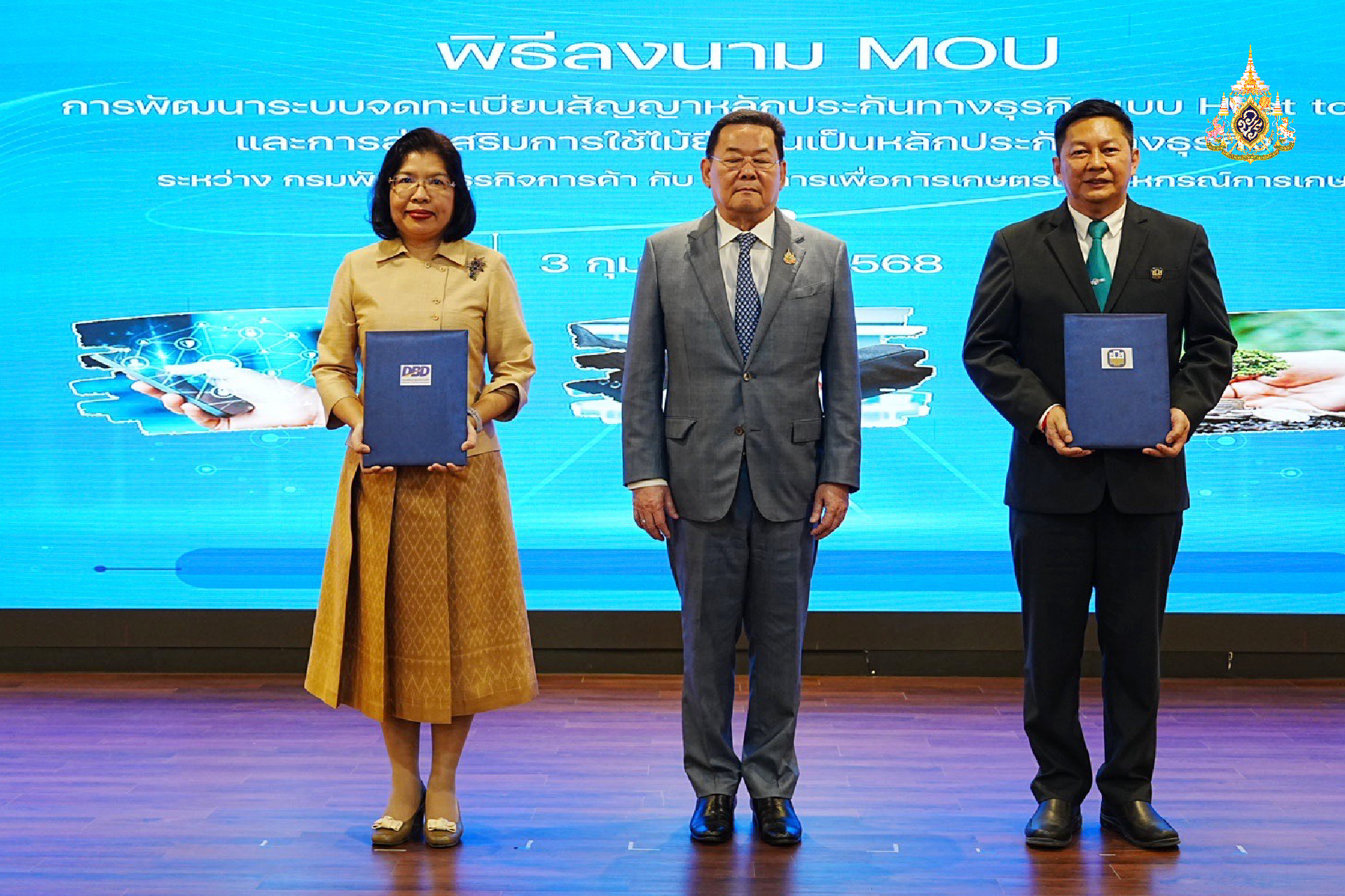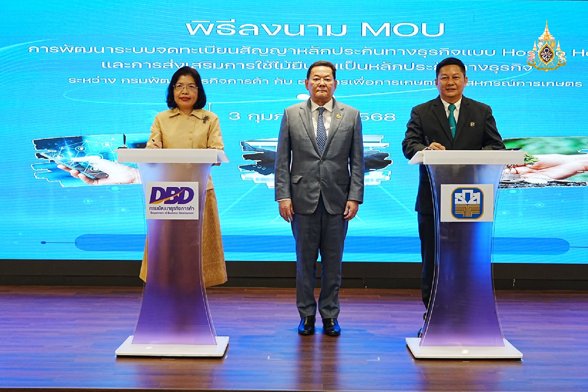 3 กุมภาพันธ์ 2568 นายนภินทร ศรีสรรพางค์ รัฐมนตรีช่วยว่าการกระทรวงพาณิชย์ ร่วมเป็นสักขีพยานการบันทึกความร่วมมือว่าด้วยการพัฒนาระบบจดทะเบียนสัญญาหลักประกันทางธุรกิจแบบ Host to Host และการส่งเสริมการใช้ไม้ยืนต้นเป็นหลักประกันทางธุรกิจ ระหว่างกรมพัฒนาธุรกิจการค้ากับธนาคารเพื่อการเกษตรและสหกรณ์การเกษตร จับมือพัฒนาระบบรองรับการจดทะเบียนสัญญาหลักประกันแบบ Host to Host เพิ่มความรวดเร็วในการให้บริการ และส่งเสริมให้ผู้ประกอบการ SME และเกษตรกรใช้ไม้ยืนต้นมาเป็นหลักประกันทางธุรกิจ มีเงินทุนต่อยอดธุรกิจให้เติบโตต่อไป พร้อมขอบคุณ ธ.ก.ส. ที่เห็นความสำคัญของการพัฒนาธุรกิจไทยให้ยั่งยืน