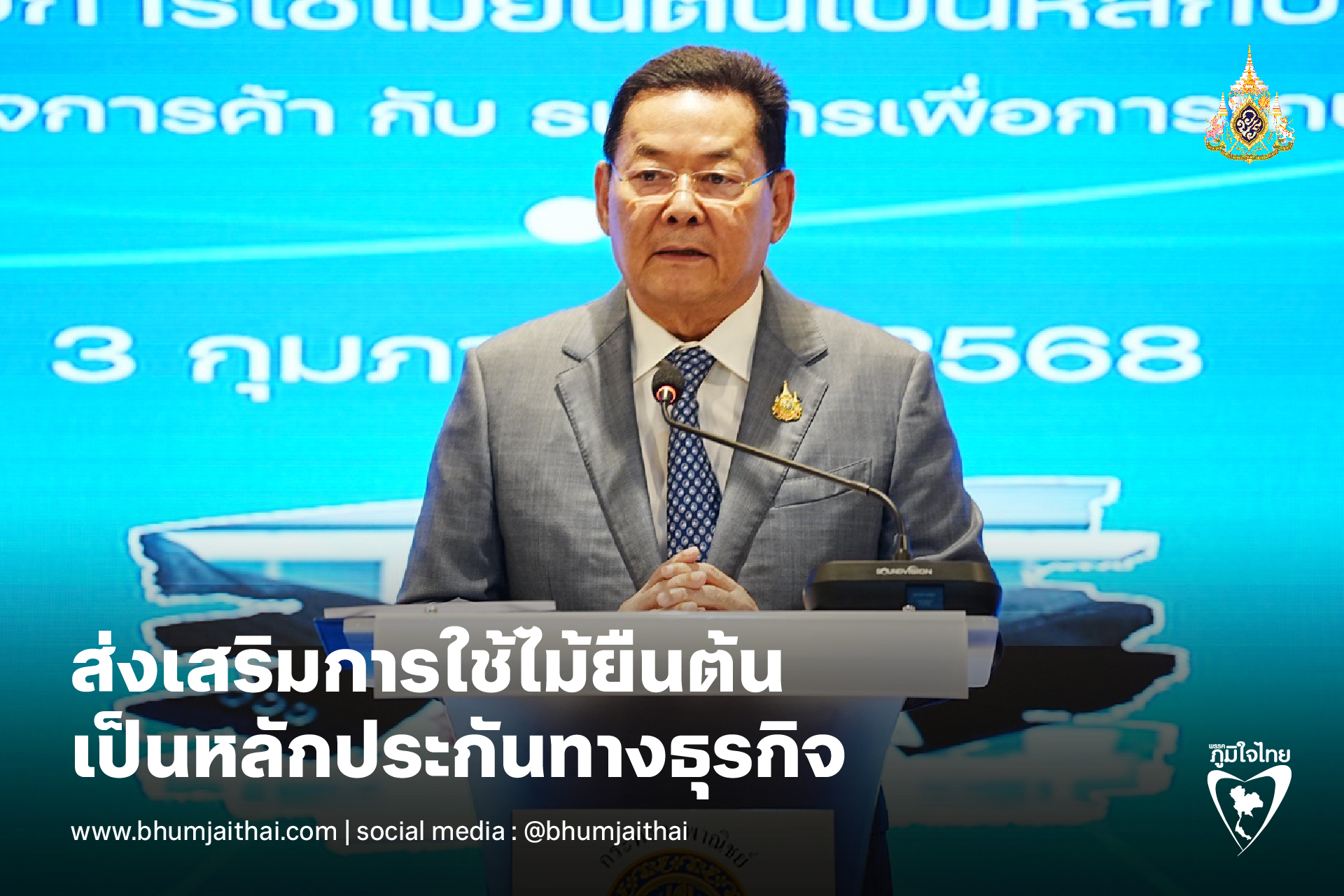 " โอกาสนี้ผมต้องขอขอบคุณ ธนาคารเพื่อการเกษตรและสหกรณ์การเกษตร (ธ.ก.ส.) ที่ให้ความสำคัญกับการส่งเสริมผู้ประกอบการ วิสาหกิจชุมชน เกษตรกร และประชาชนทั่วไป โดยเฉพาะเกษตรกรให้ได้รับโอกาสในการเข้าถึงแหล่งเงินทุน และเป็นธนาคารแห่งแรกที่รับไม้ยืนต้นเป็นหลักประกันทางธุรกิจ เพื่อนำเงินมาเป็นทุนต่อยอดทำธุรกิจ โดยรับไม้ยืนต้นเป็นหลักประกันแล้วจำนวน 1,520 ต้น วงเงินหลักประกันมากกว่า 10 ล้านบาท และจากสถิติของกรมพัฒนาธุรกิจการค้าในภาพรวมมีการจดทะเบียนรับไม้ยืนต้นเป็นหลักประกันแล้วจำนวน 167,302 ต้น วงเงินหลักประกันกว่า 185 ล้านบาท (ข้อมูล ณ 31 ธันวาคม 2567)" รมช.พณ. กล่าวทิ้งท้าย