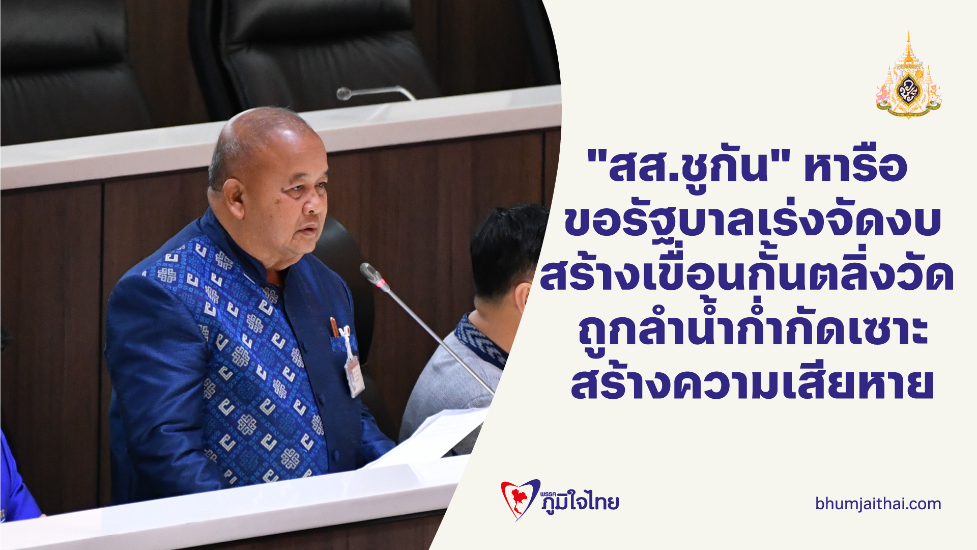 "สส.ชูกัน" หารือสภาฯ ขอรัฐบาลเร่งจัดงบประมาณ สร้างเขื่อนกั้นตลิ่งวัดศรีสะอาด และวัดป่าสุวรรณาราม ถูกลำน้ำก่ำกัดเซาะ สร้างความเสียหาย