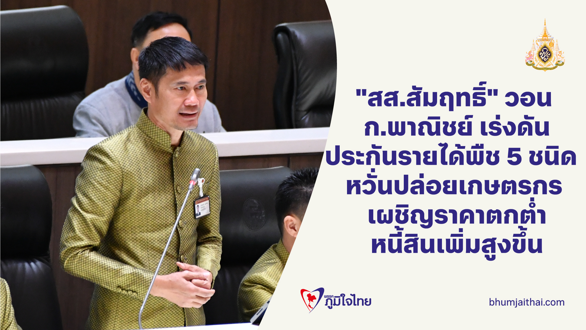 อย่าปล่อยตามยถากรรม! "สส.สัมฤทธิ์" วอน ก.พาณิชย์ประกันรายได้ 5 พืชเศรษฐกิจ หวั่นปล่อยเกษตรกรเผชิญราคาตกต่ำ หนี้สินพุ่ง
