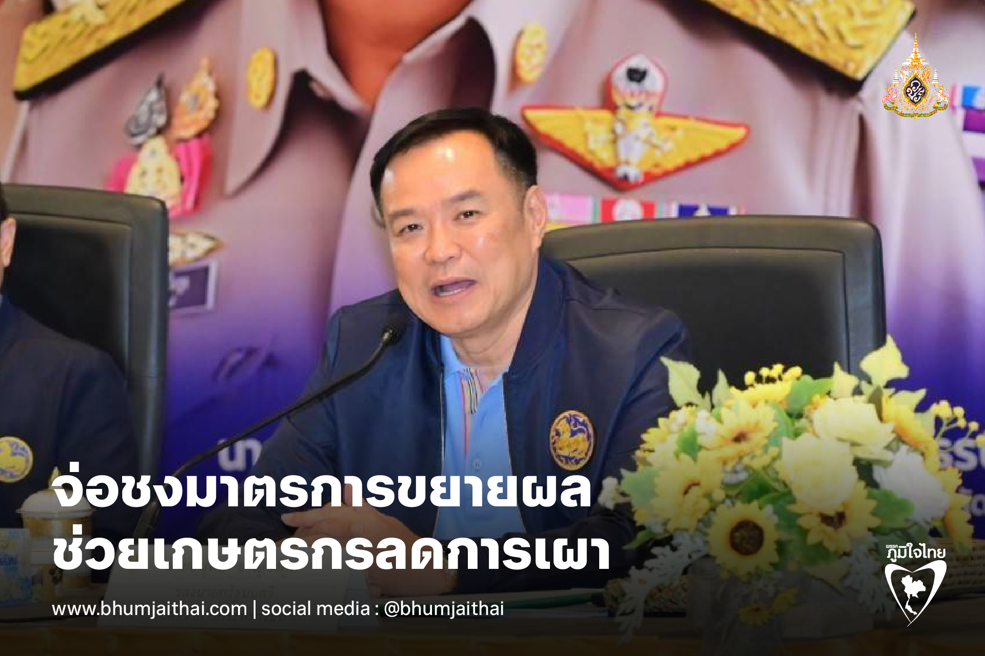 "เราต้องหาวิธีการลดผลกระทบมากที่สุด เพื่อไม่ให้ส่งผลกระทบทั้งทางเศรษฐกิจของประเทศและสุขภาพของประชาชน ด้วยการบังคับใช้มาตรการตามกฎหมายอย่างจริงจังกับผู้ที่ฝ่าฝืนกฎหมายที่สร้างความเดือดร้อนให้กับประชาชนคนอื่น ขณะเดียวกันก็ต้องดำเนินมาตรการป้องกันควบคู่ไปด้วย เช่นที่ อ.แม่แจ่ม จ.เชียงใหม่ ตนได้ลงพื้นที่ไปตรวจเยี่ยม ได้เห็นซังข้าวโพดและเศษใบไม้แห้งกองมหึมา 1 กองมีน้ำหนักถึง 70,000 กิโลกรัม โดยผู้ว่าฯ เชียงใหม่ นายอำเภอแม่แจ่ม ได้รวมพลังของพี่น้องประชาชน ระดมสรรพกำลังทำการอัดก้อนฟาง เพื่อใช้ประโยชน์ต่างๆ ลดปัญหามลพิษ ซึ่งกระทรวงมหาดไทยอยู่ในระหว่างการนำเสนอขอรับการจัดสรรงบกลางมาช่วยสนับสนุนขยายผลให้ครอบคลุมพื้นที่ต่างๆ อาทิ ค่าน้ำมัน ค่าขนส่ง เพื่อเป็นการช่วยสนับสนุนโดยรัฐ" นายอนุทิน กล่าว