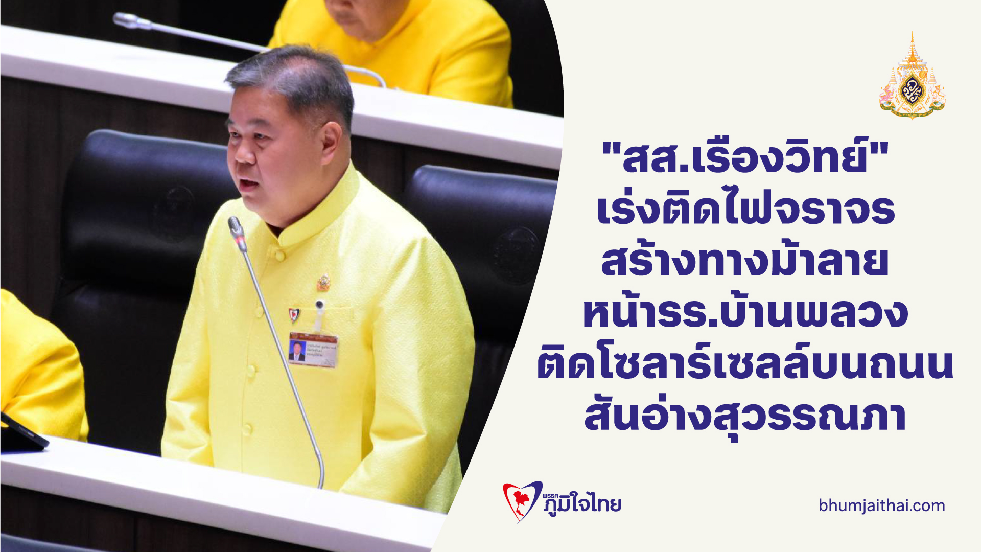"สส.เรืองวิทย์" หารือสภาฯ ติดสัญญาณไฟจราจร ทางม้าลาย หน้ารร.บ้านพลวง พร้อมฝากกรมชลประทน ติดไฟโซลาร์เซลล์บนถนนสันอ่างเก็บน้ำสุวรรณภาให้ชาวบ้าน อ.ปราสาท