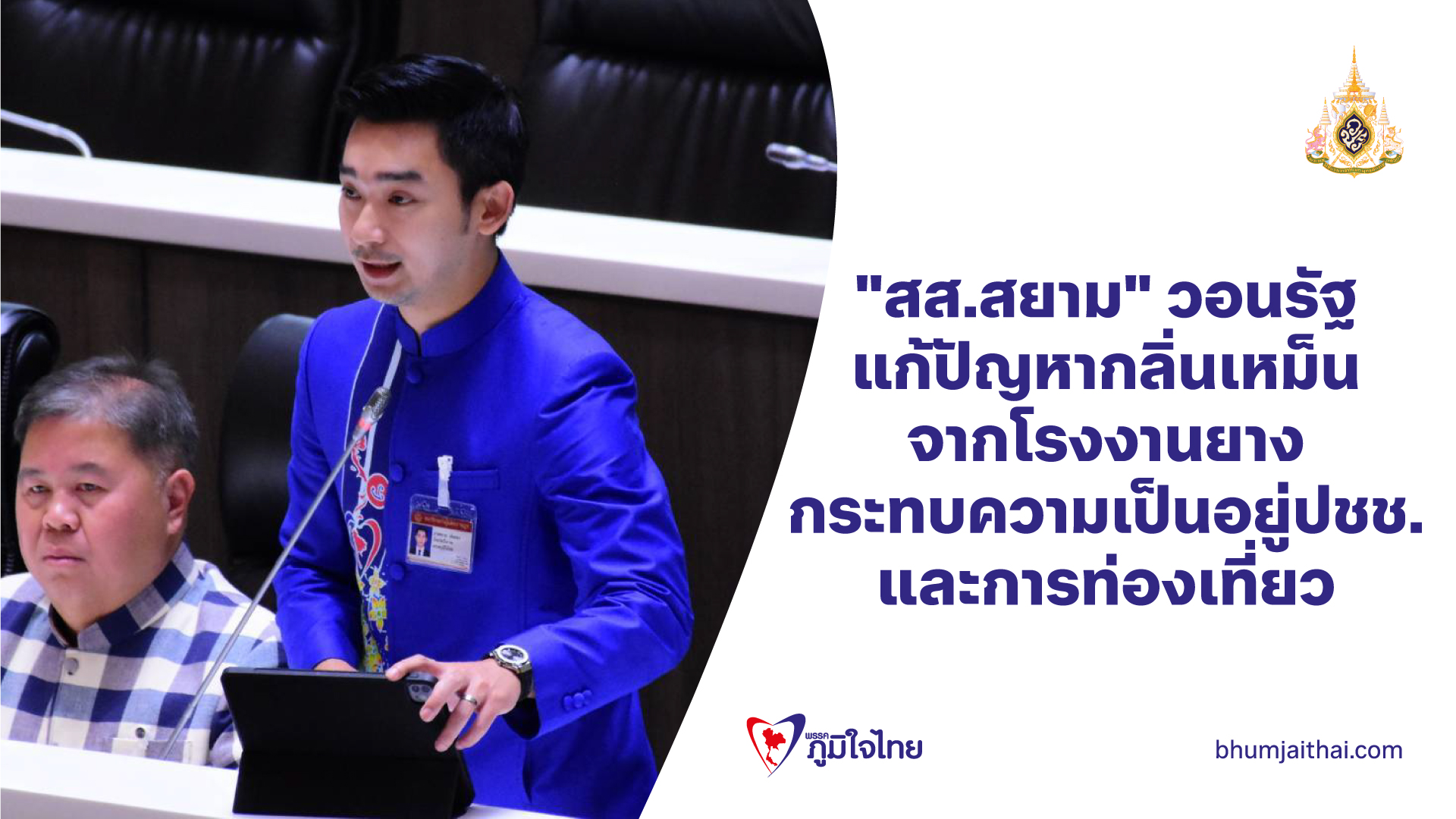 "สส.สยาม" วอนรัฐ แก้ปัญหากลิ่นเหม็น จากโรงงานยาง กระทบความเป็นอยู่ปชช. และการท่องเที่ยว
