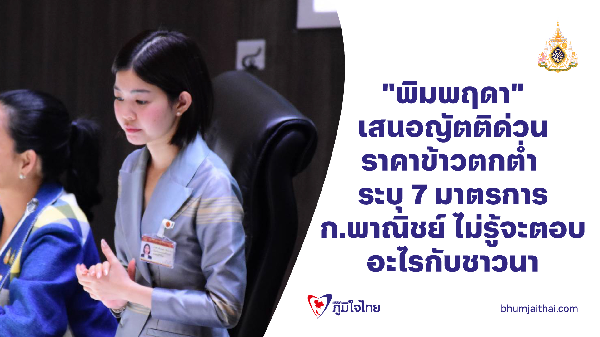 ชาวนาจะเกี่ยวข้าวแล้ว ! สส.พิมพฤดา เสนอญัตติด่วน ราคาข้าวที่ตกต่ำ ระบุ 7 มาตรการ ของกระทรวงพาณิชย์ ไม่รู้จะตอบอะไรกับชาวนา เพราะไม่ได้แก้ปัญหาอย่างยั่งยืนให้กระดูกสันหลังของชาติ