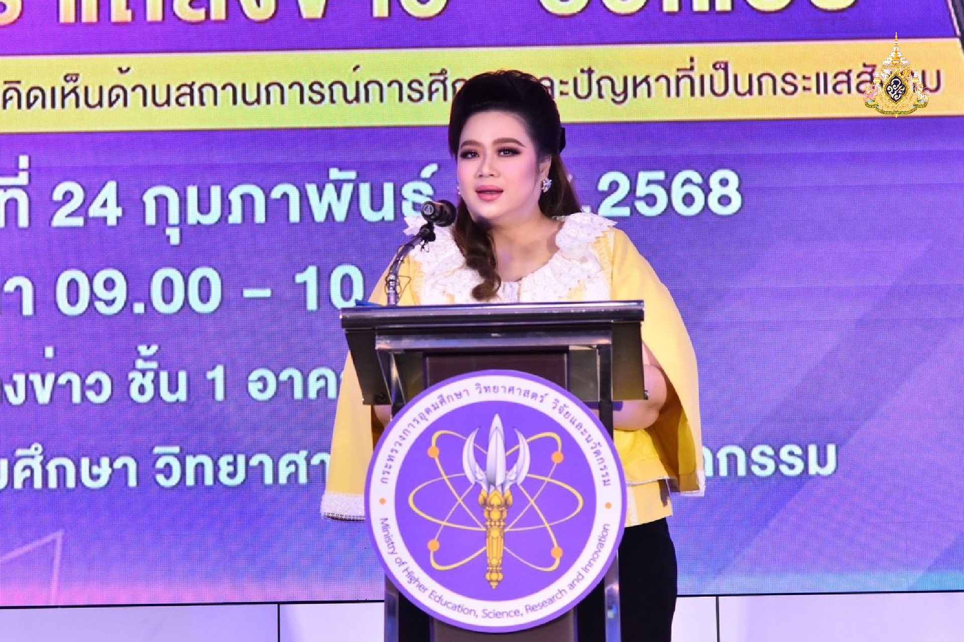 เมื่อวันที่ 24 ก.พ. 2568 น.ส.ศุภมาส อิศรภักดี รมว.การอุดมศึกษา วิทยาศาสตร์ วิจัยและนวัตกรรม (อว.) ได้เป็นประธานการแถลงข่าว "เปิดตัว อว.แอป" แอปพลิเคชันในระดับกระทรวง ที่ถือเป็นแหล่งรวมข้อมูล และมีฐานข้อมูลจำนวนมาก ที่นำไปใช้ประโยชน์ในการส่งเสริมสนับสนุน และพัฒนาการจัดการความรู้เพื่อการสร้างศักยภาพความยั่งยืนของนิสิต นักศึกษาในสถาบันอุดมศึกษา คณาจารย์ ผู้ปกครอง ผู้ประกอบการ และประชาชนทั่วไป โดยมี ศ.ดร.ศุภชัย ปทุมนากุล ปลัดกระทรวง อว. รศ.ดร.ยศชนัน วงศ์สวัสดิ์ รองอธิการบดีมหาวิทยาลัยมหิดล รศ.ดร.สุณีย์ กัลยะจิตร อาจารย์คณะสังคมศาสตร์และมนุษยศาสตร์ มหาวิทยาลัยมหิดล หัวหน้าโครงการสร้าง อว.แอป และ อว.โพล เข้าร่วม ที่ห้องแถลงข่าว ชั้น 1 อาคารพระจอมเกล้า สำนักงานกระทรวง อว. (โยธี)