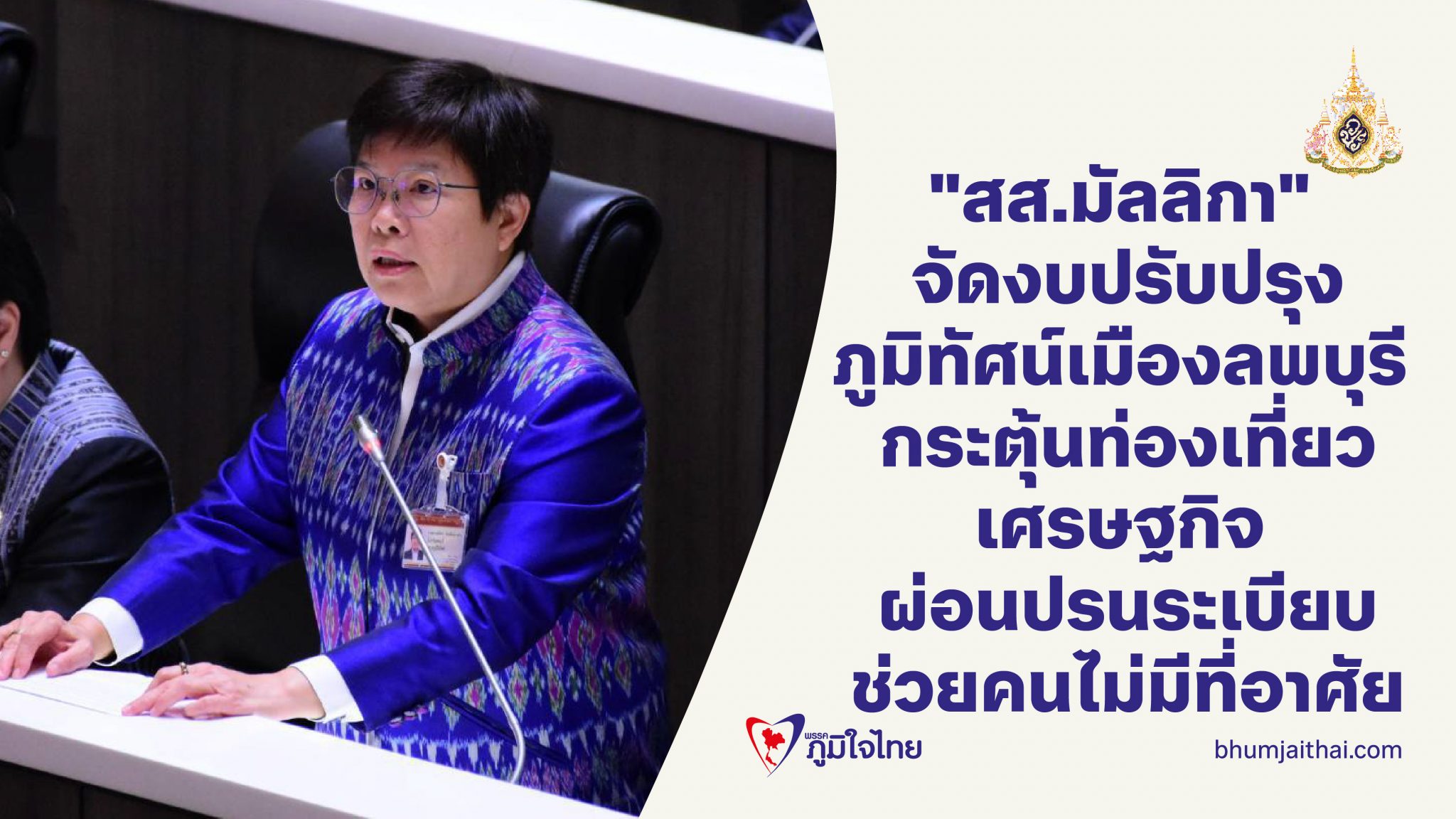 "สส.มัลลิกา" จัดงบปรับปรุงภูมิทัศน์เมืองลพบุรี กระตุ้นท่องเที่ยว เศรษฐกิจ ผ่อนปรนระเบียบช่วยคนไม่มีที่อาศัย